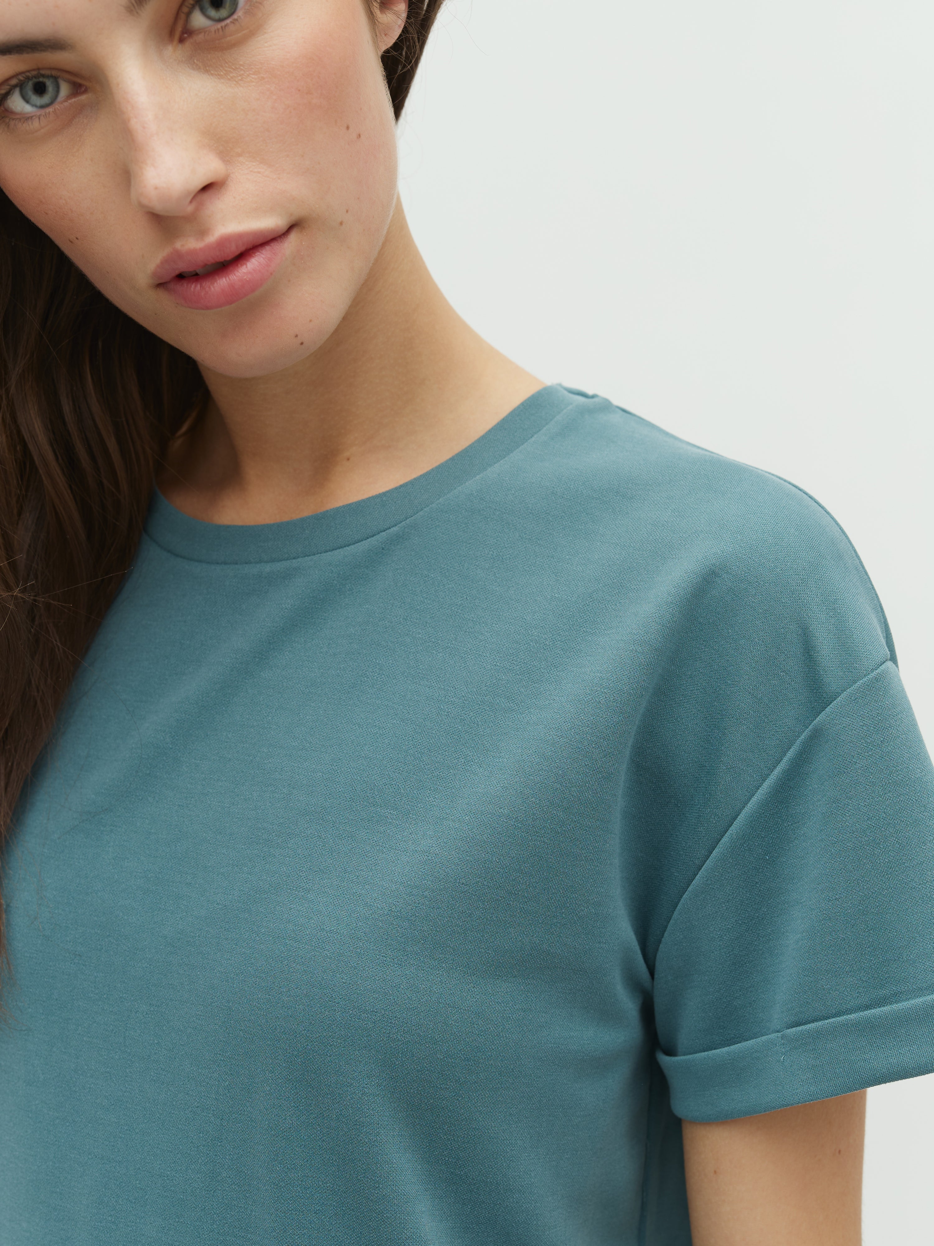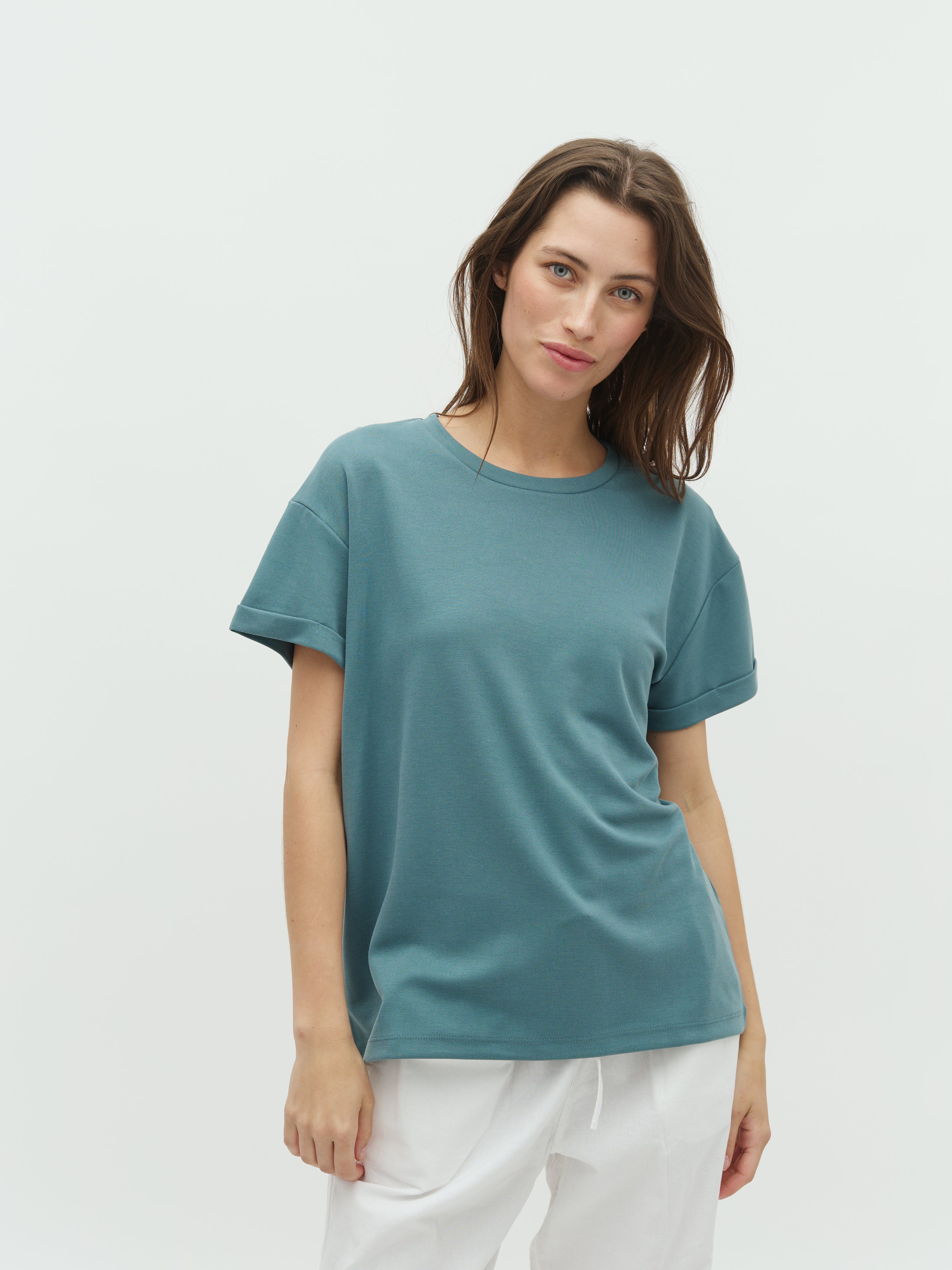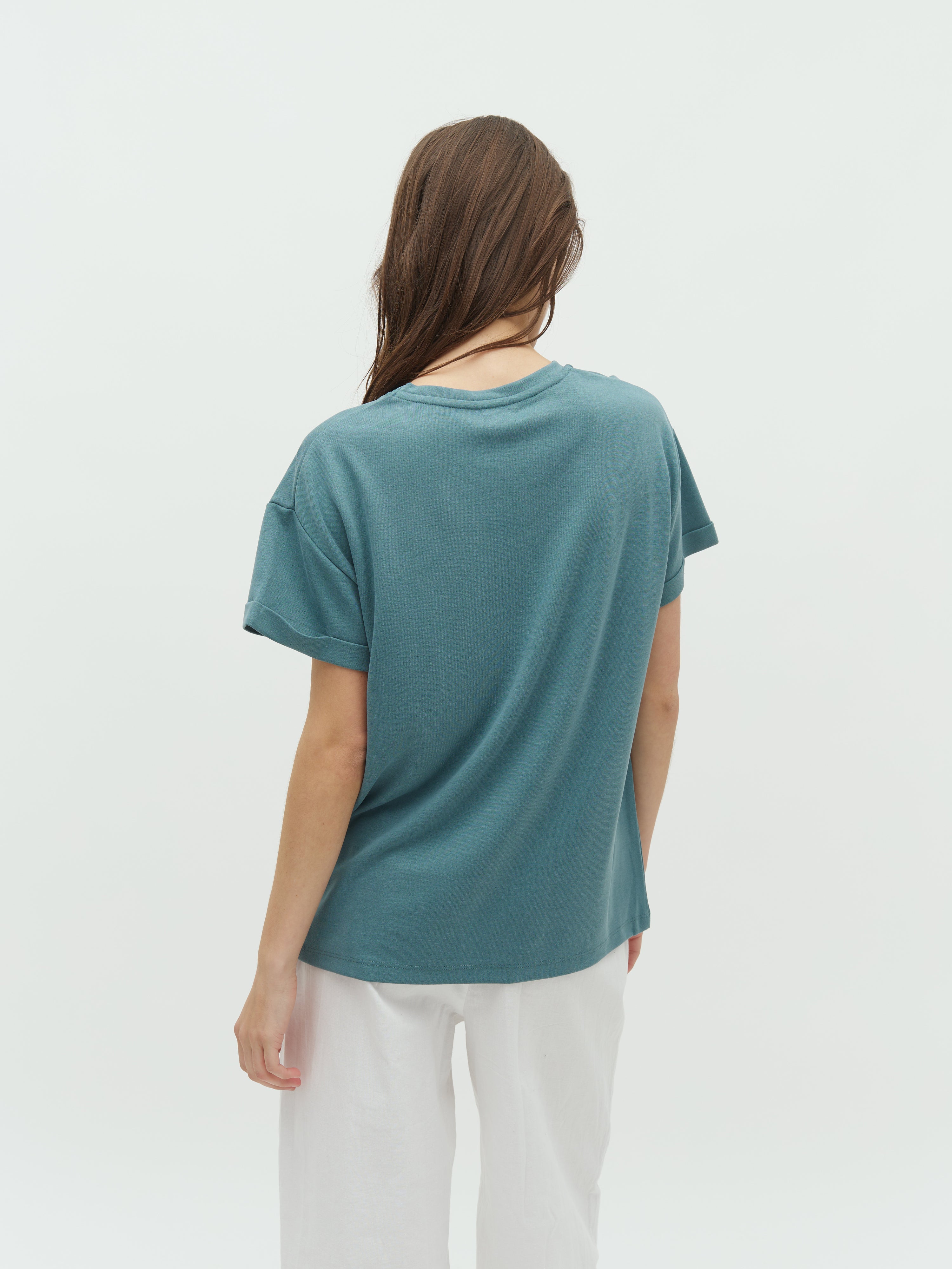 Blød t-shirt med opbræt ved ærmer.