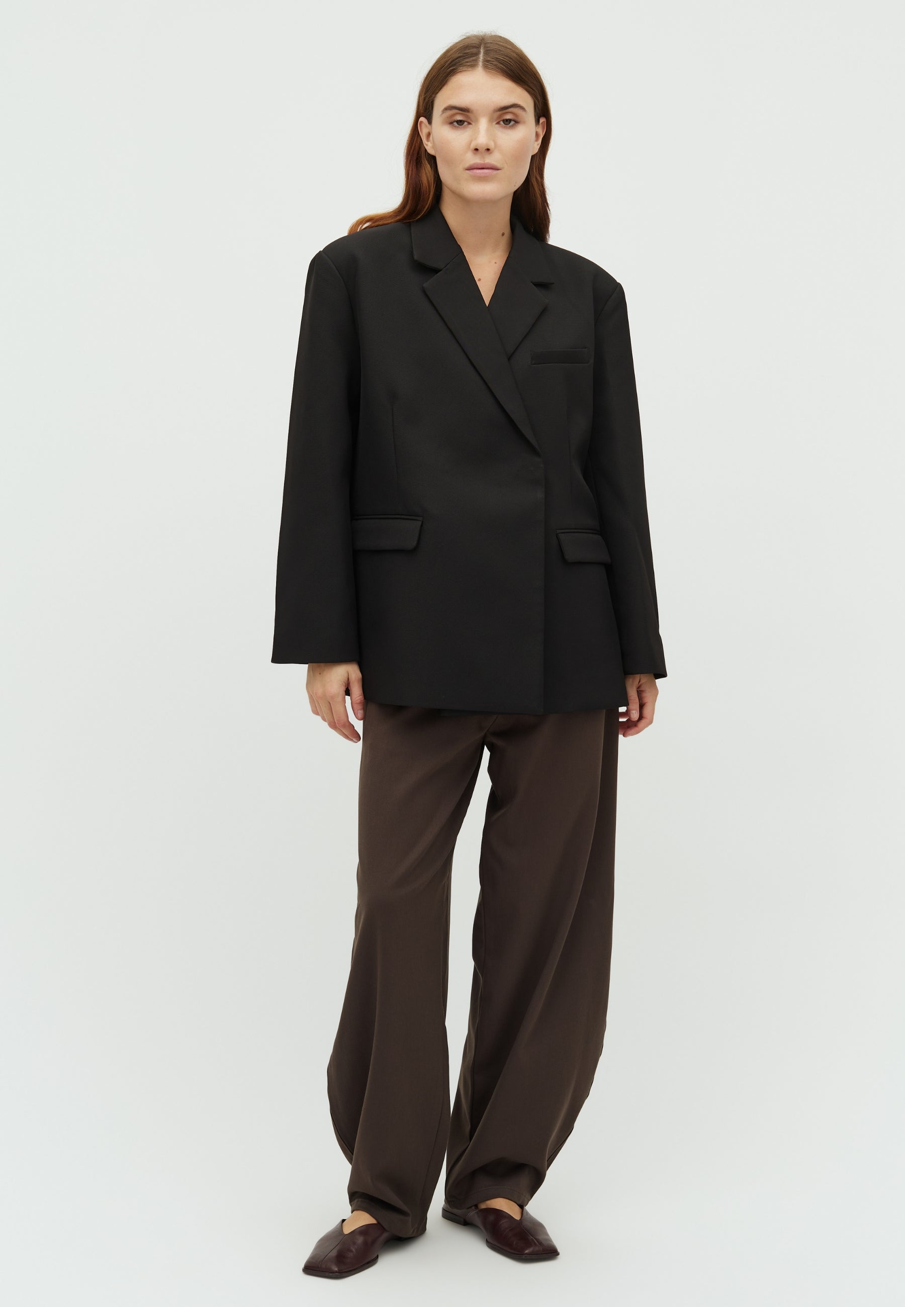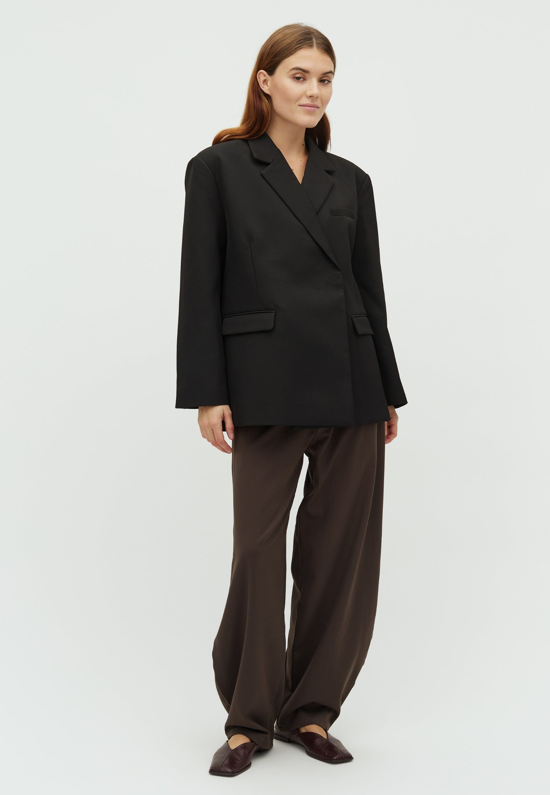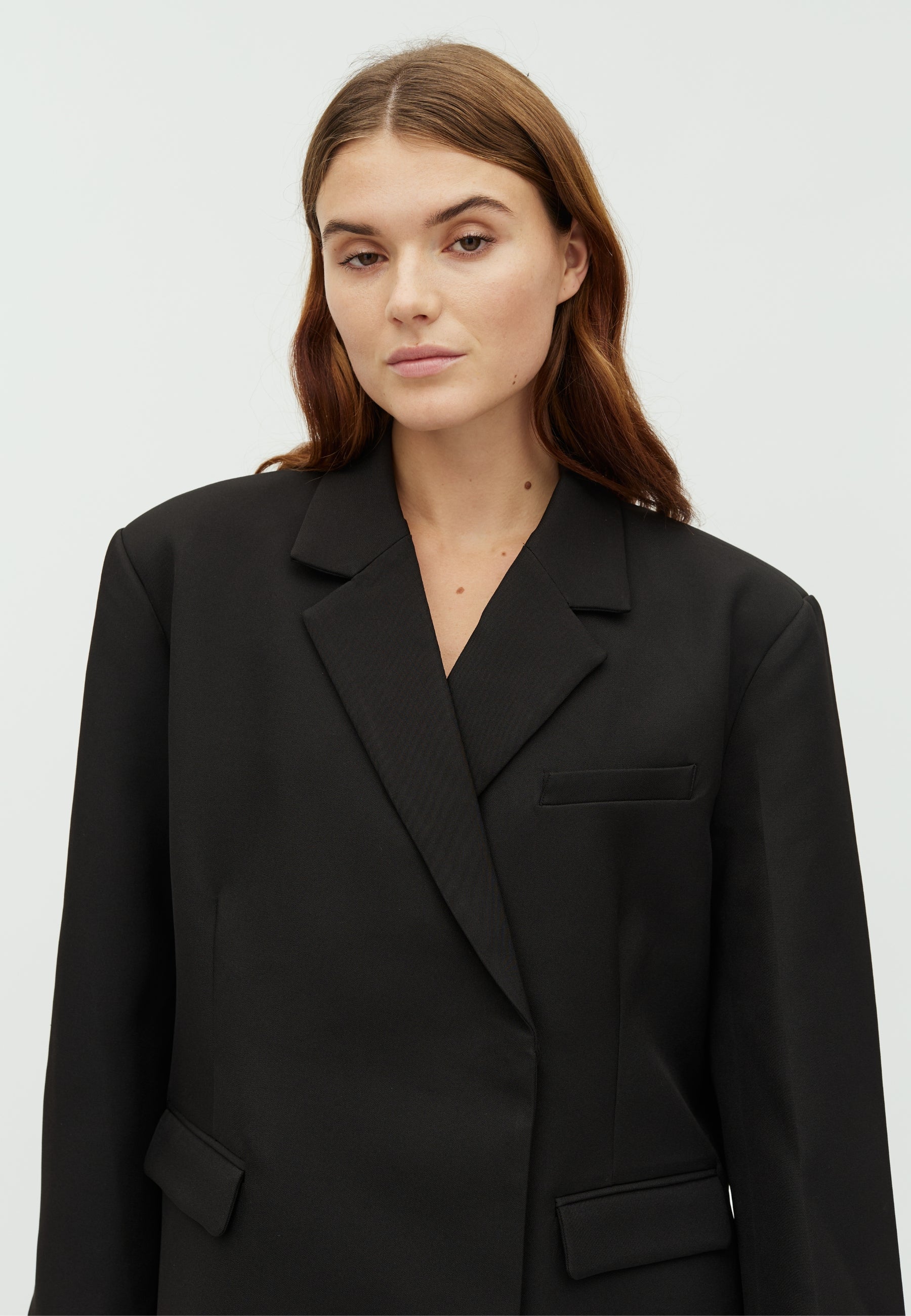 Oversized blazer med skrå lukning.