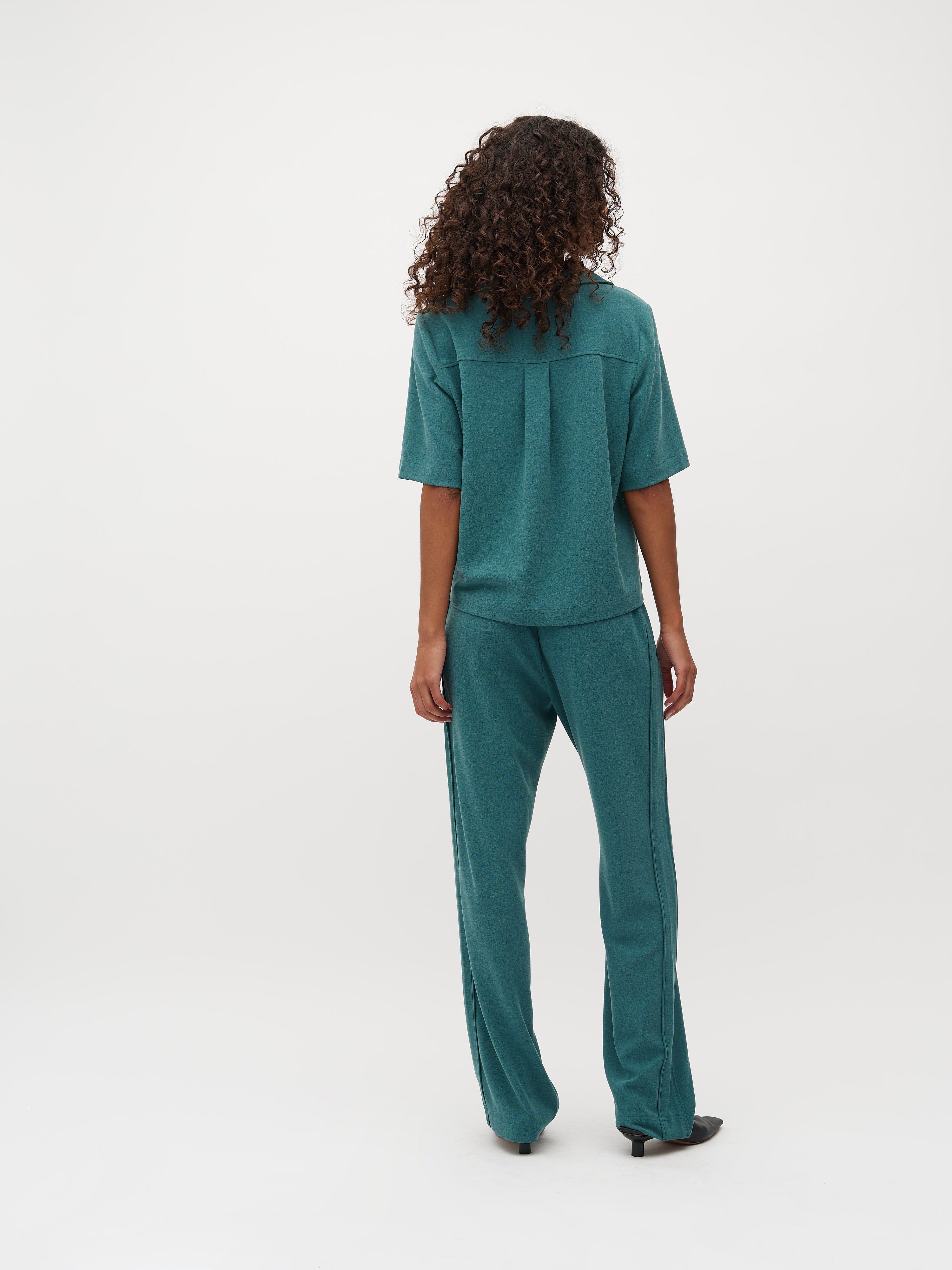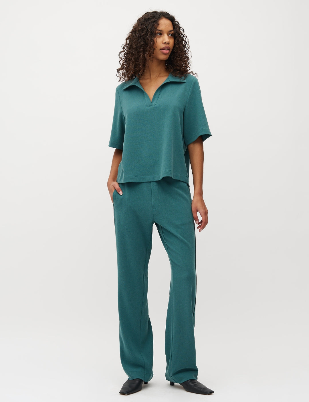 - Stryg ved lav temperatur. Vendes på vrangen ved strygning.