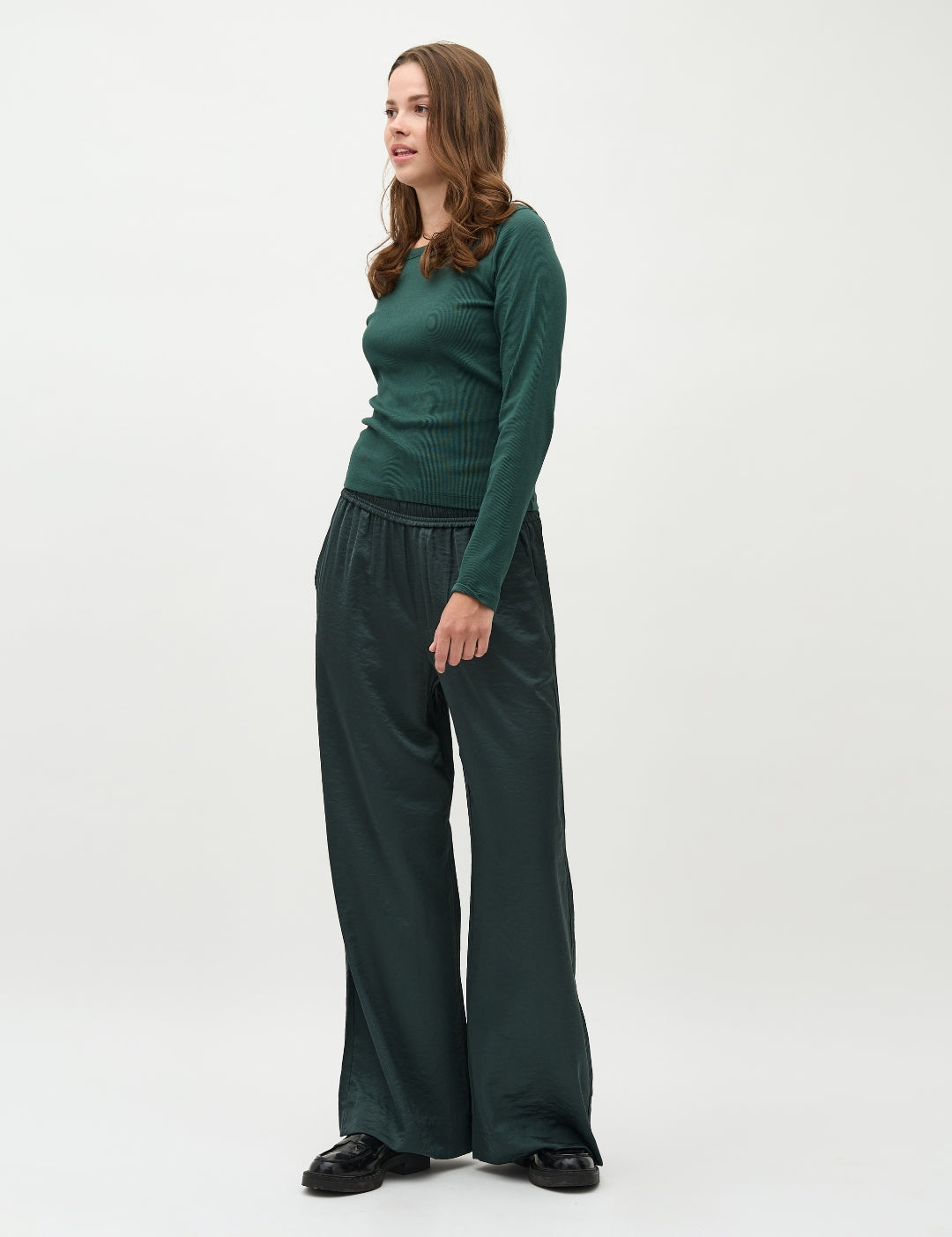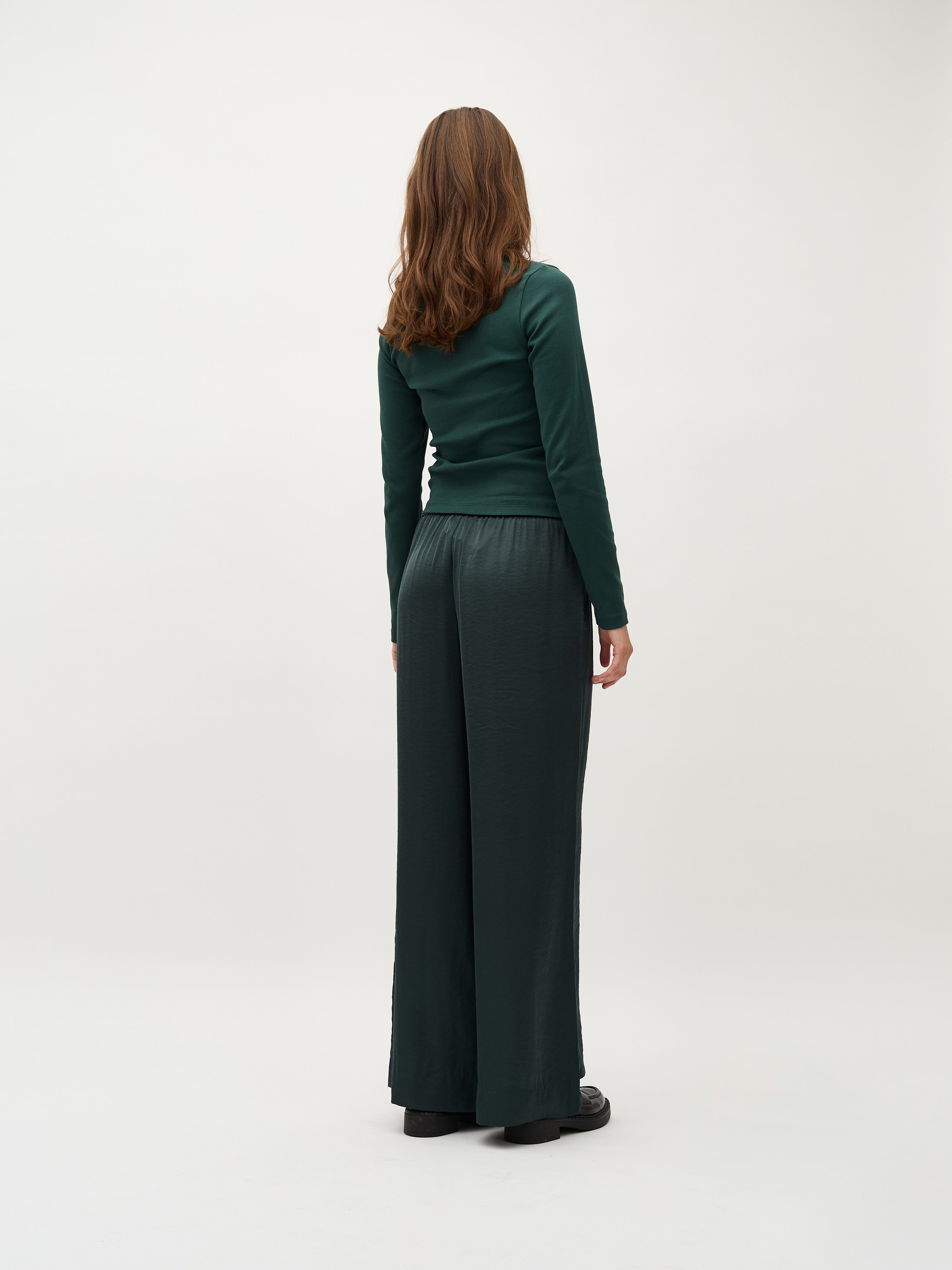 Brede satinbukser med sidelommer.