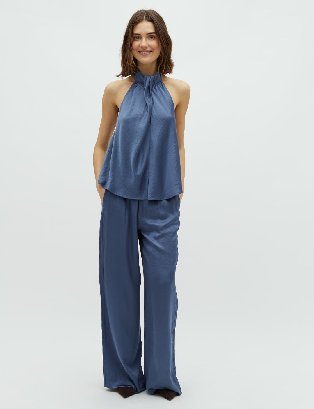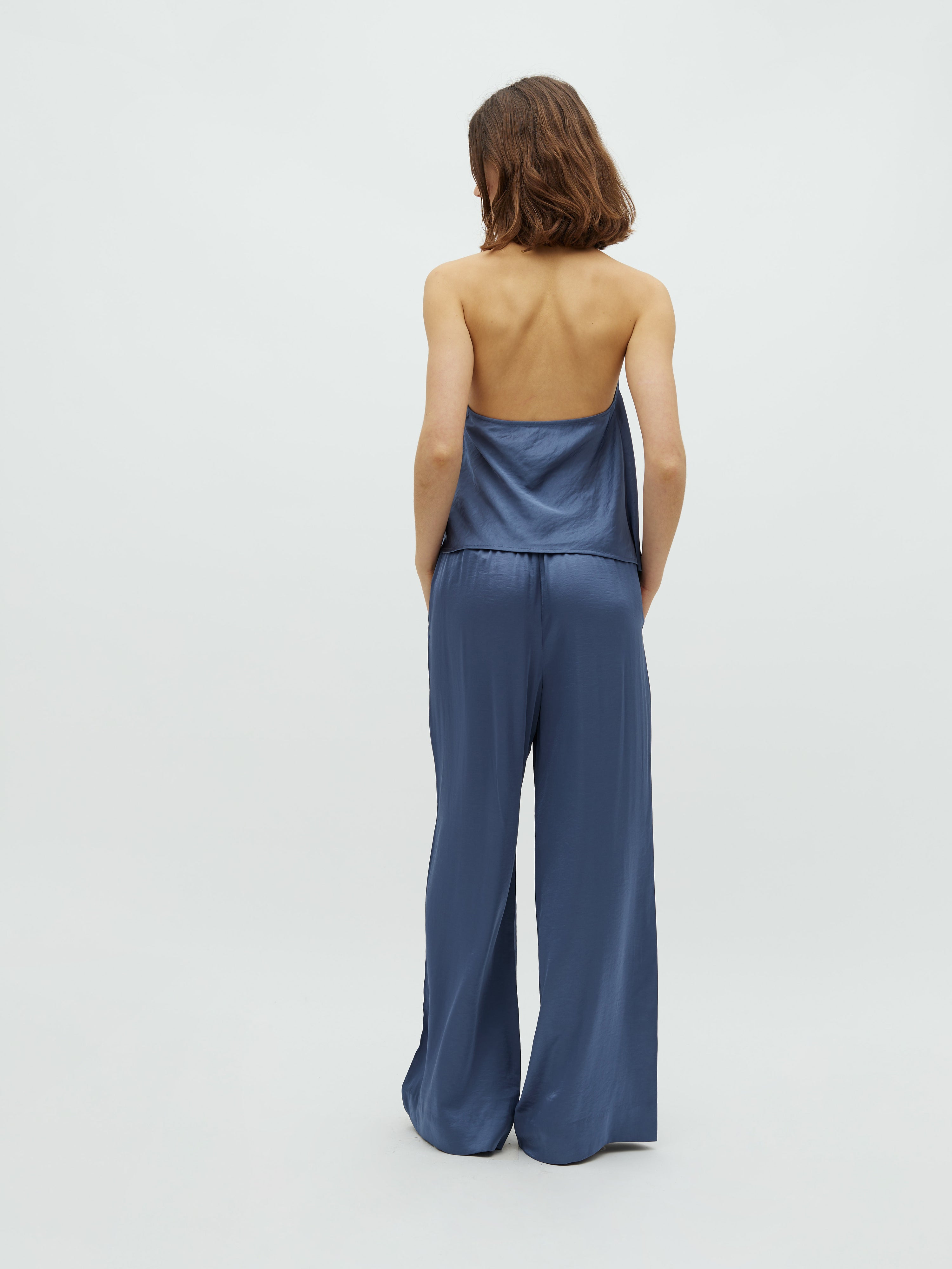 Brede satinbukser med sidelommer.