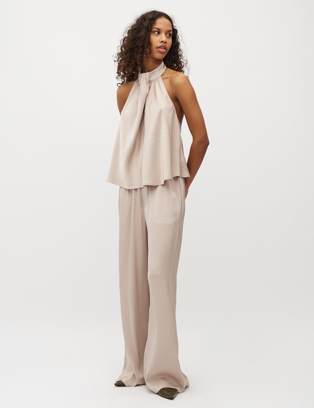 Brede satinbukser med sidelommer.
