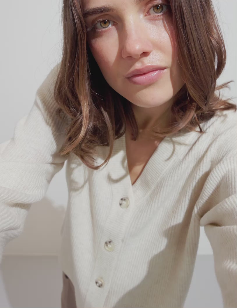 Strik cardigan med dyb udskæring i nakken.