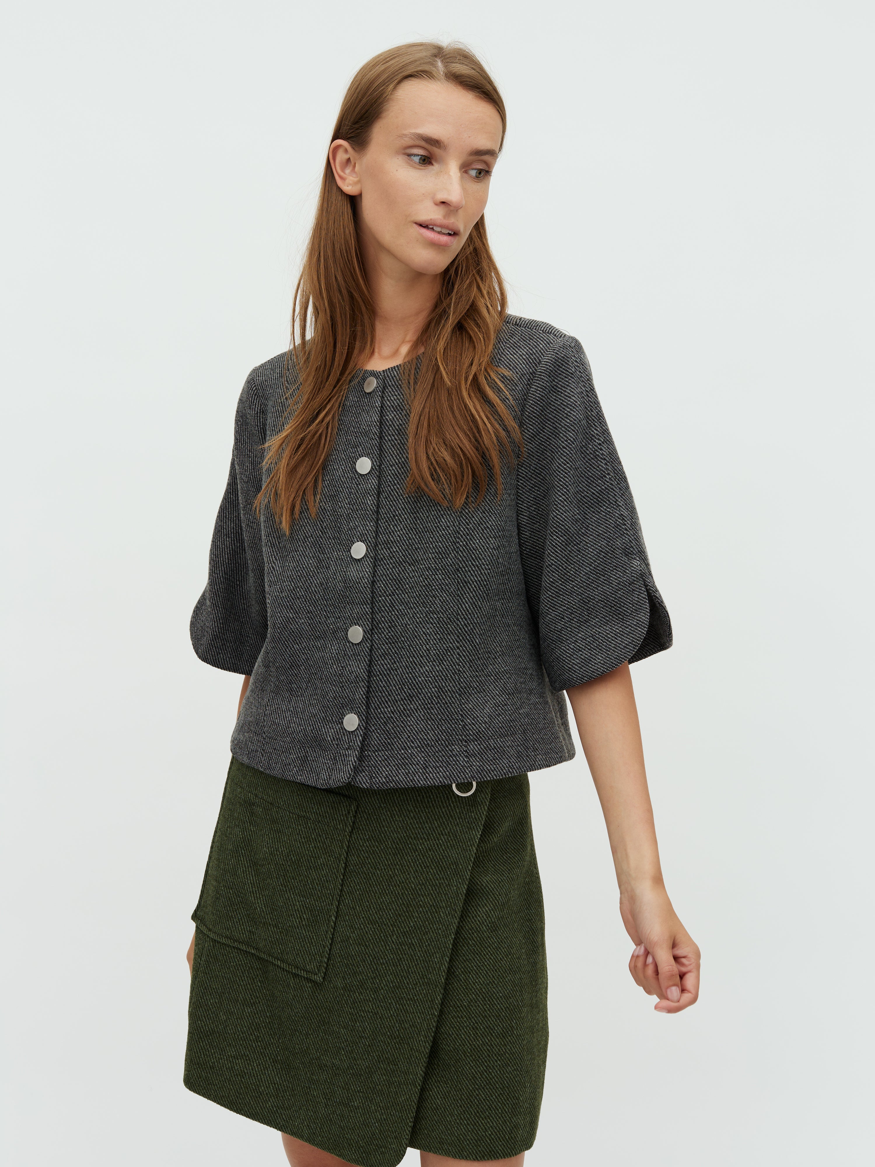 - Stryg ved lav temperatur. Vendes på vrangen ved strygning.