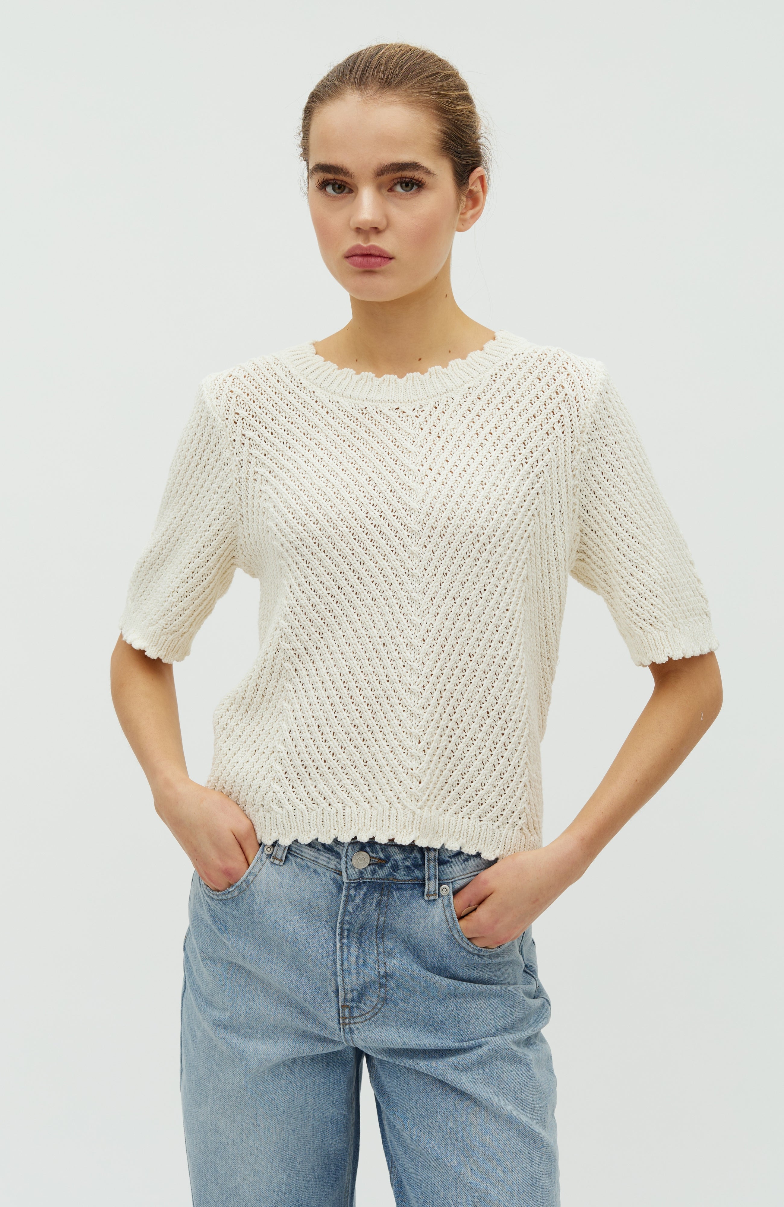 Kortærmet strik.