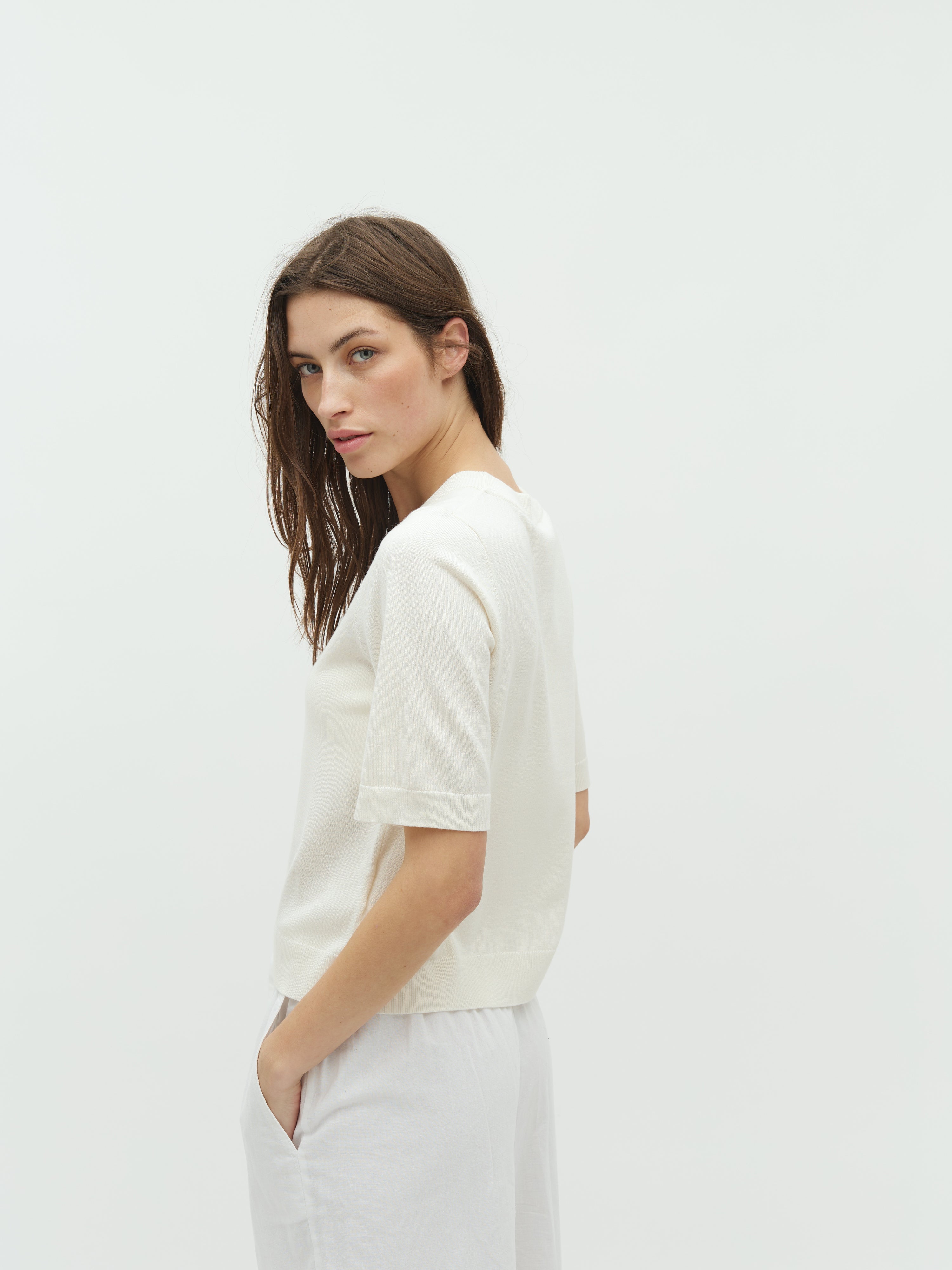 - Stryg ved lav temperatur. Vendes på vrangen ved strygning.