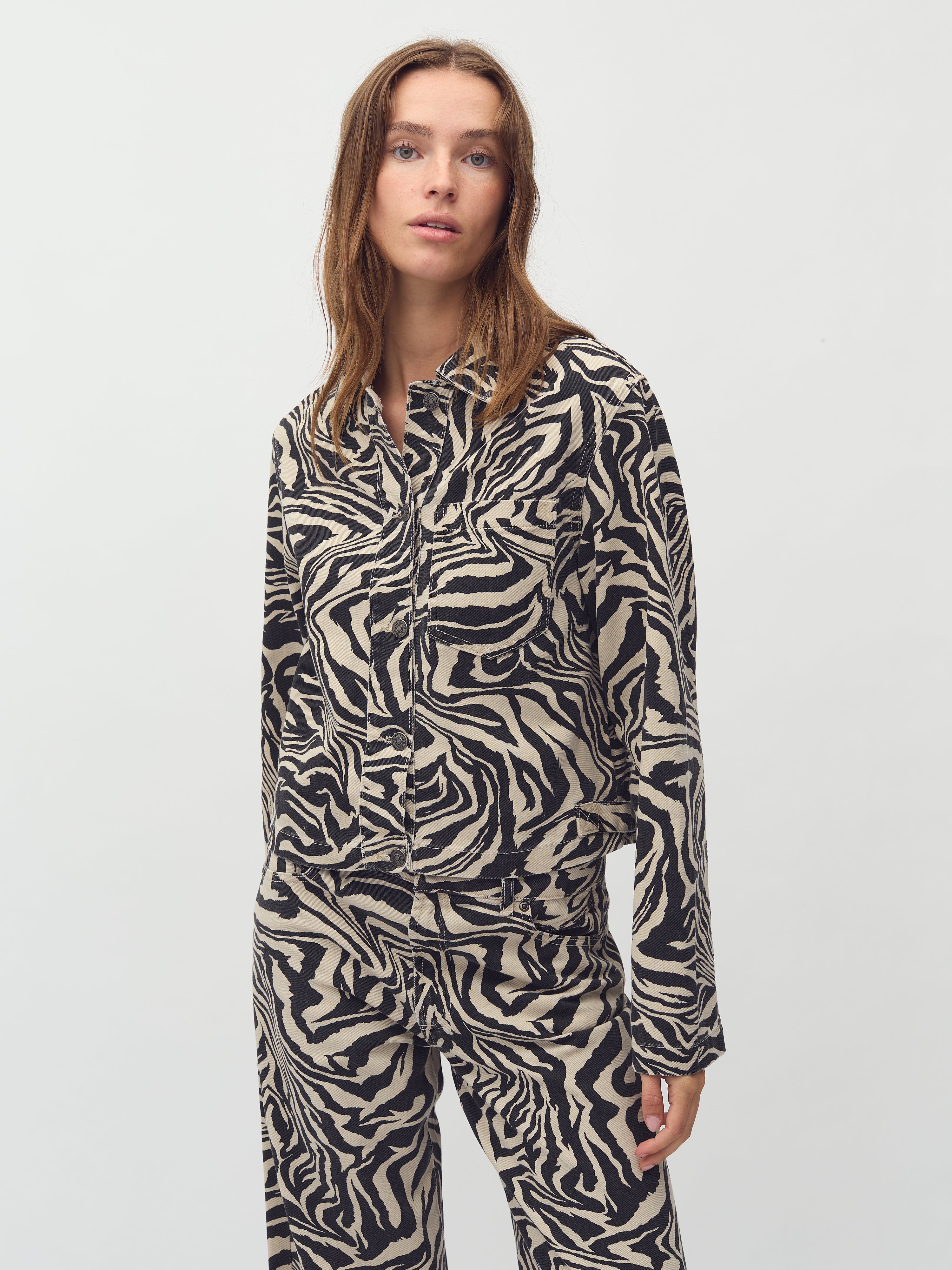 Blazerjakke i zebraprint.