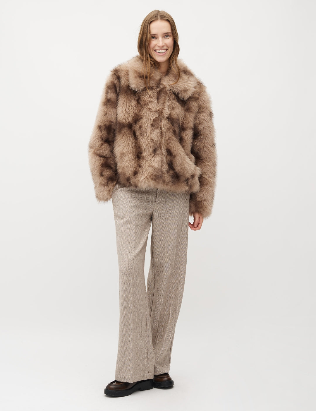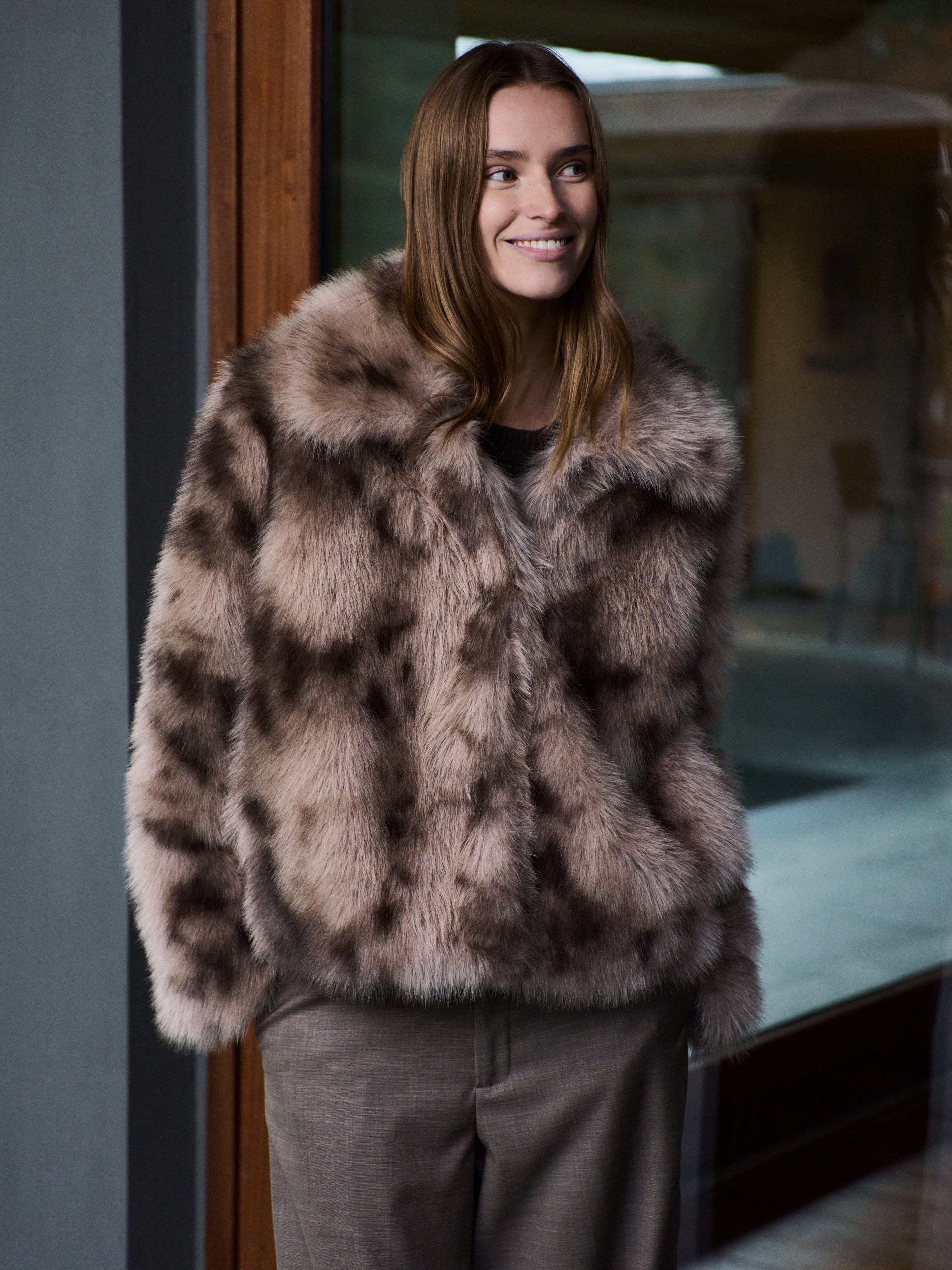Faux fur jakke med krave.