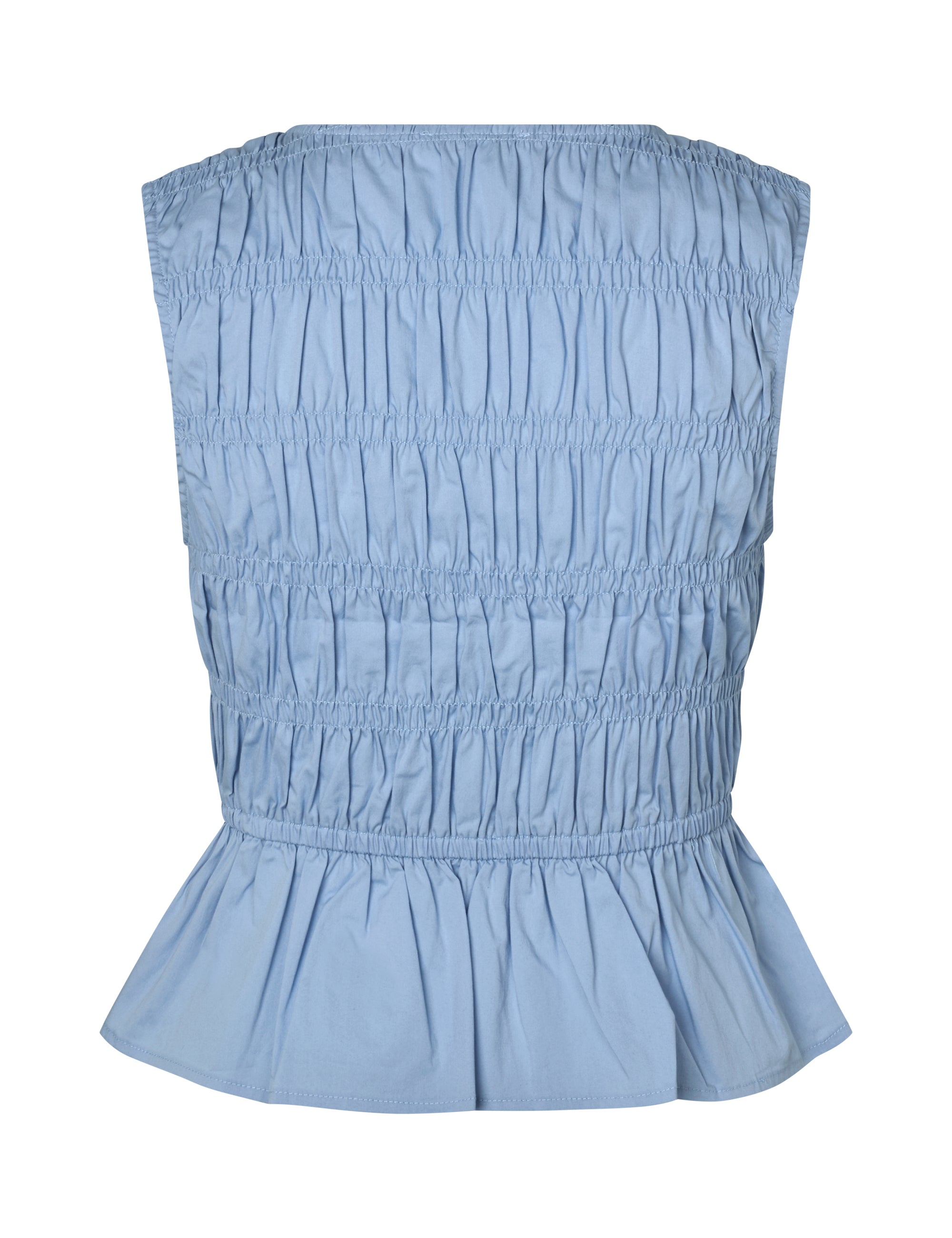 - Stryg ved lav temperatur. Vendes på vrangen ved strygning.
