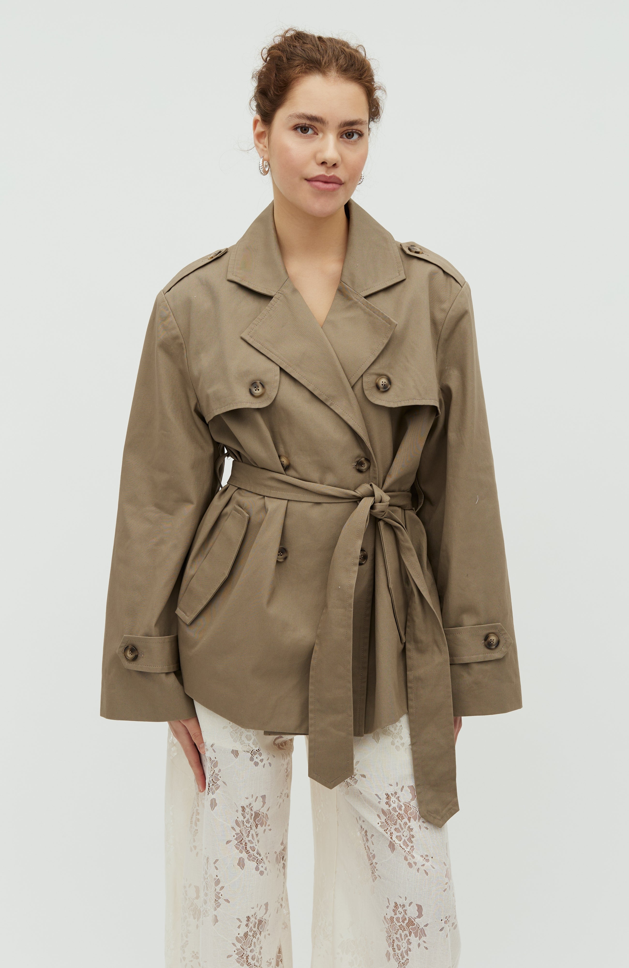 Kort klassisk trenchcoat.