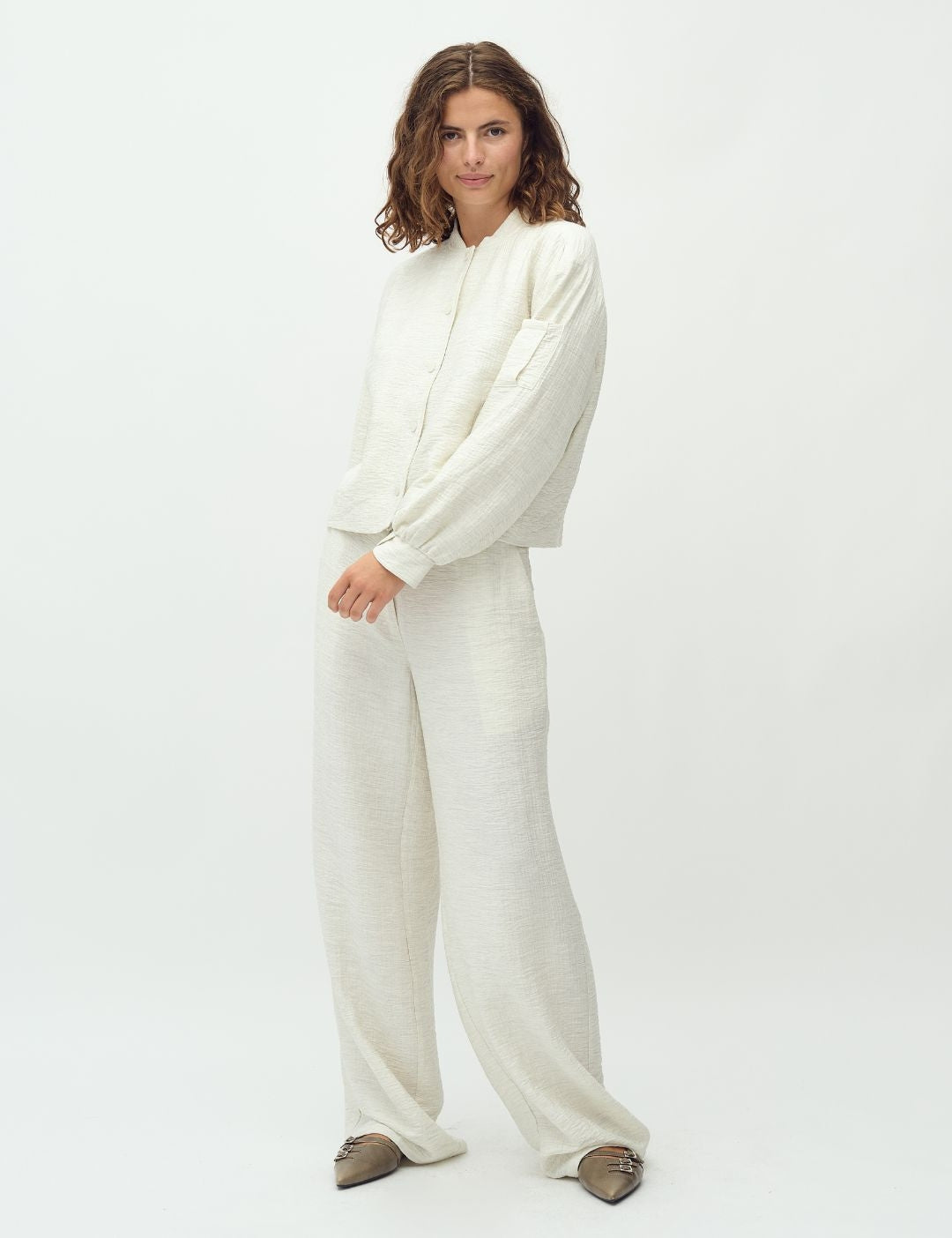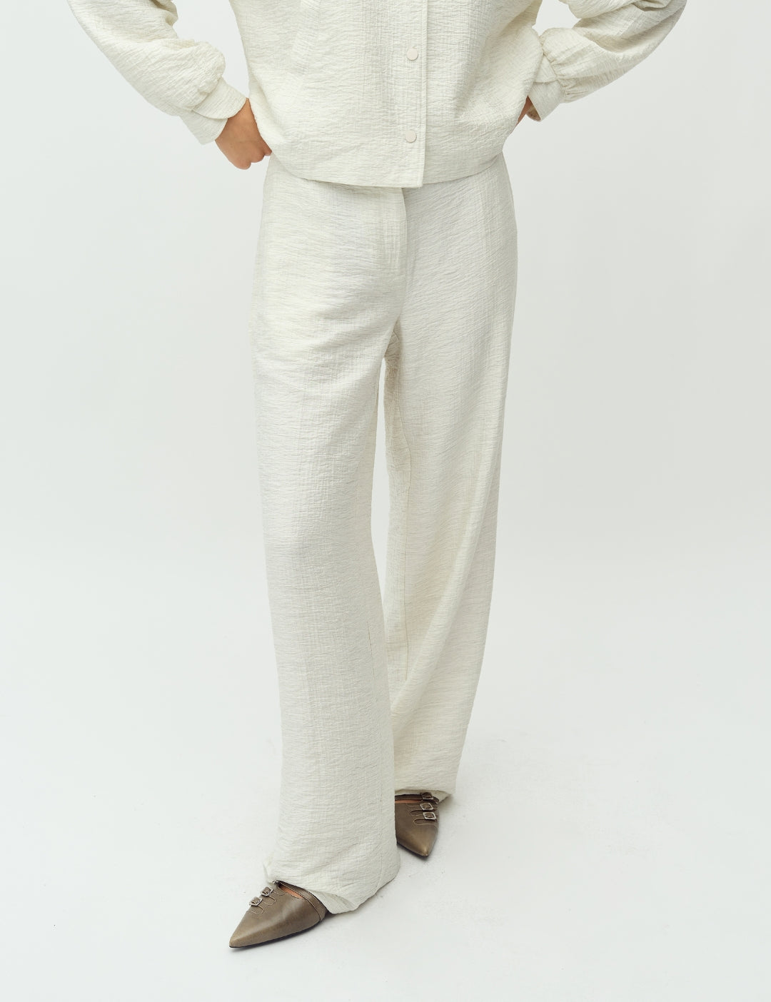 - Stryg ved lav temperatur. Vendes på vrangen ved strygning.
