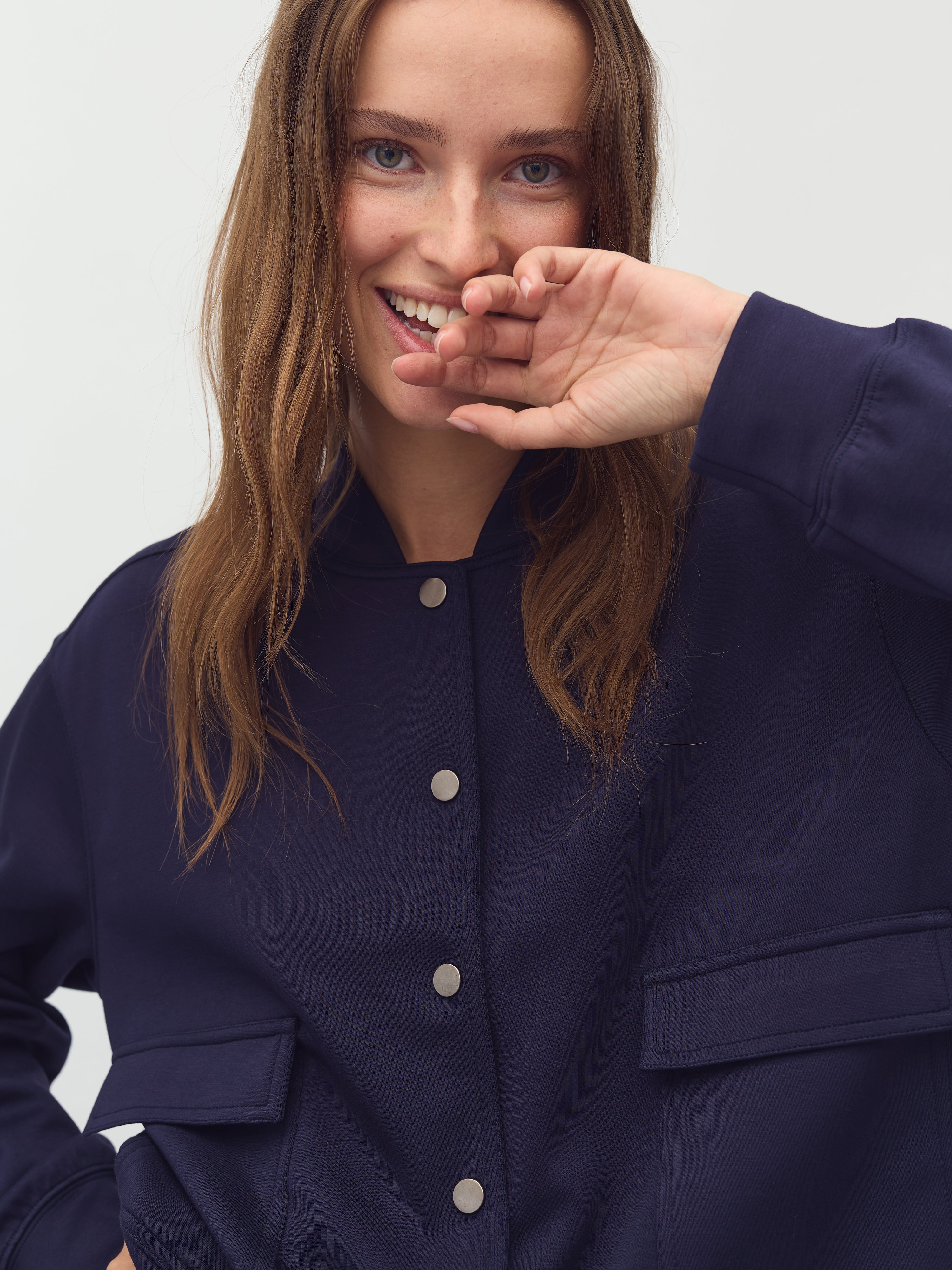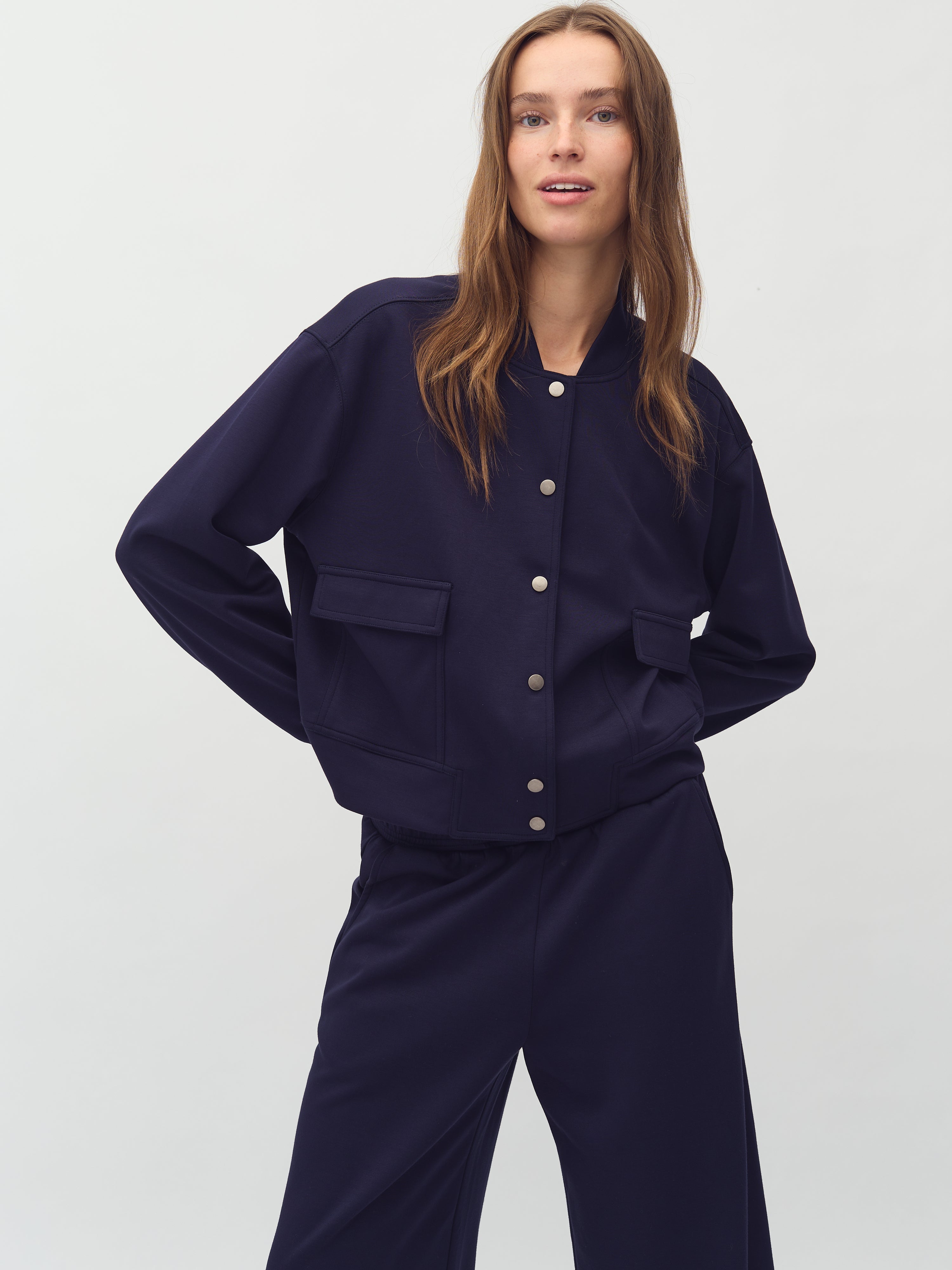 Bomber-jakke med trykknapper.