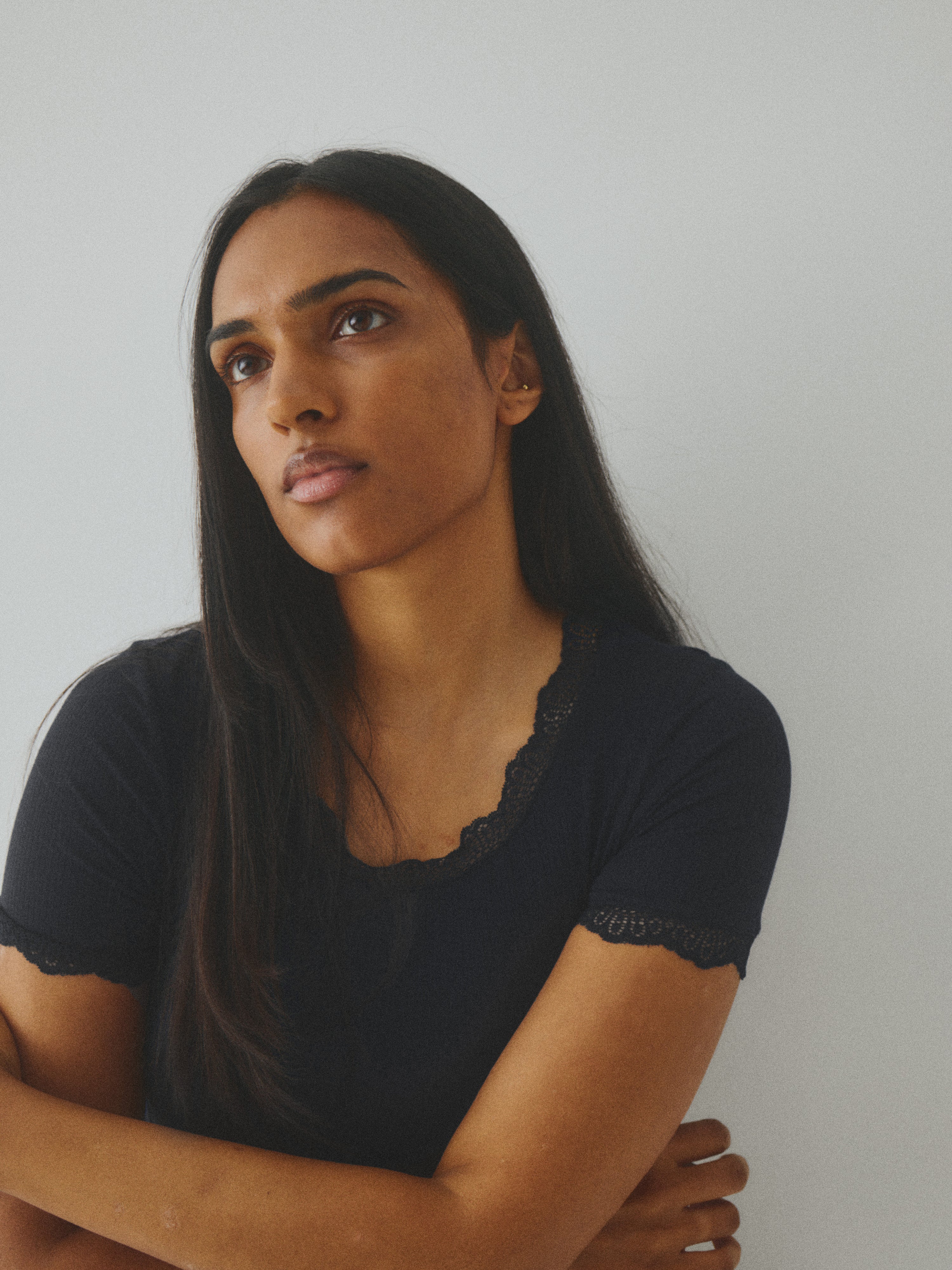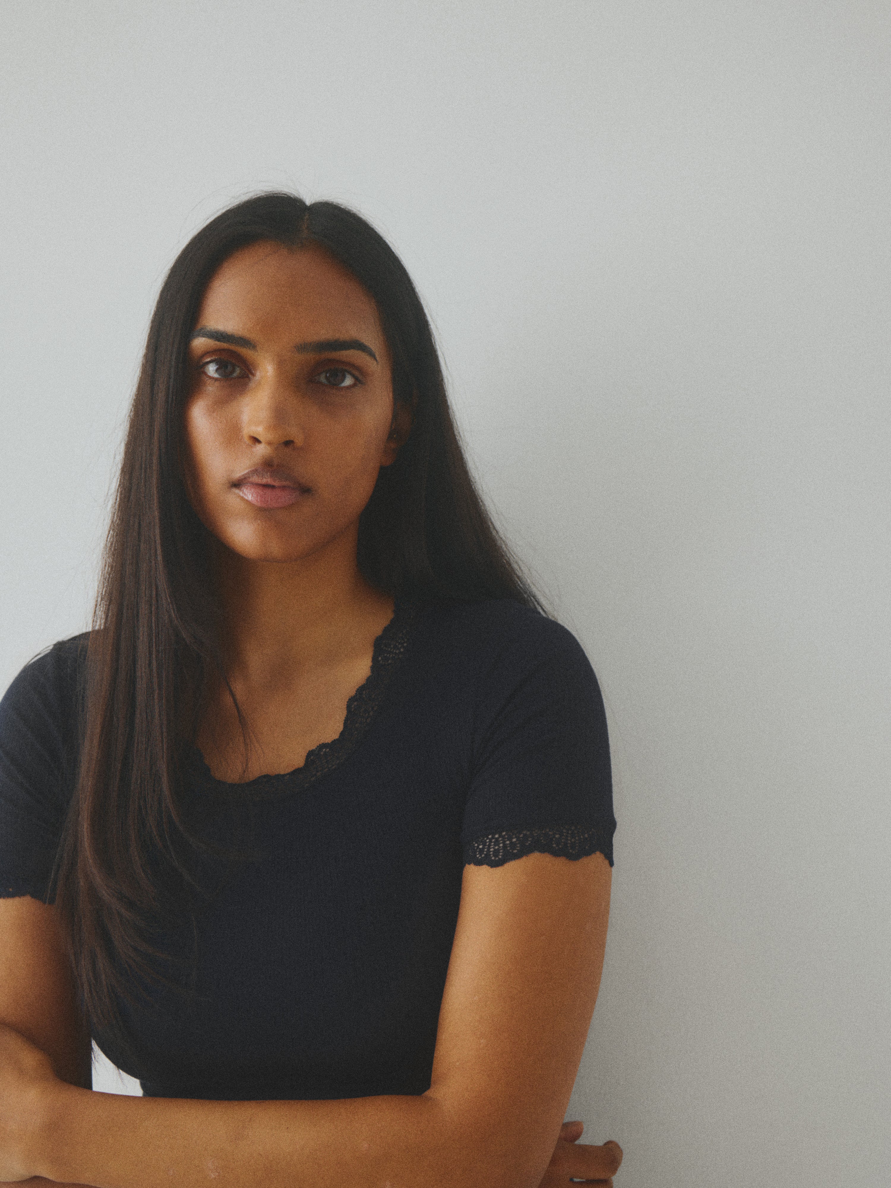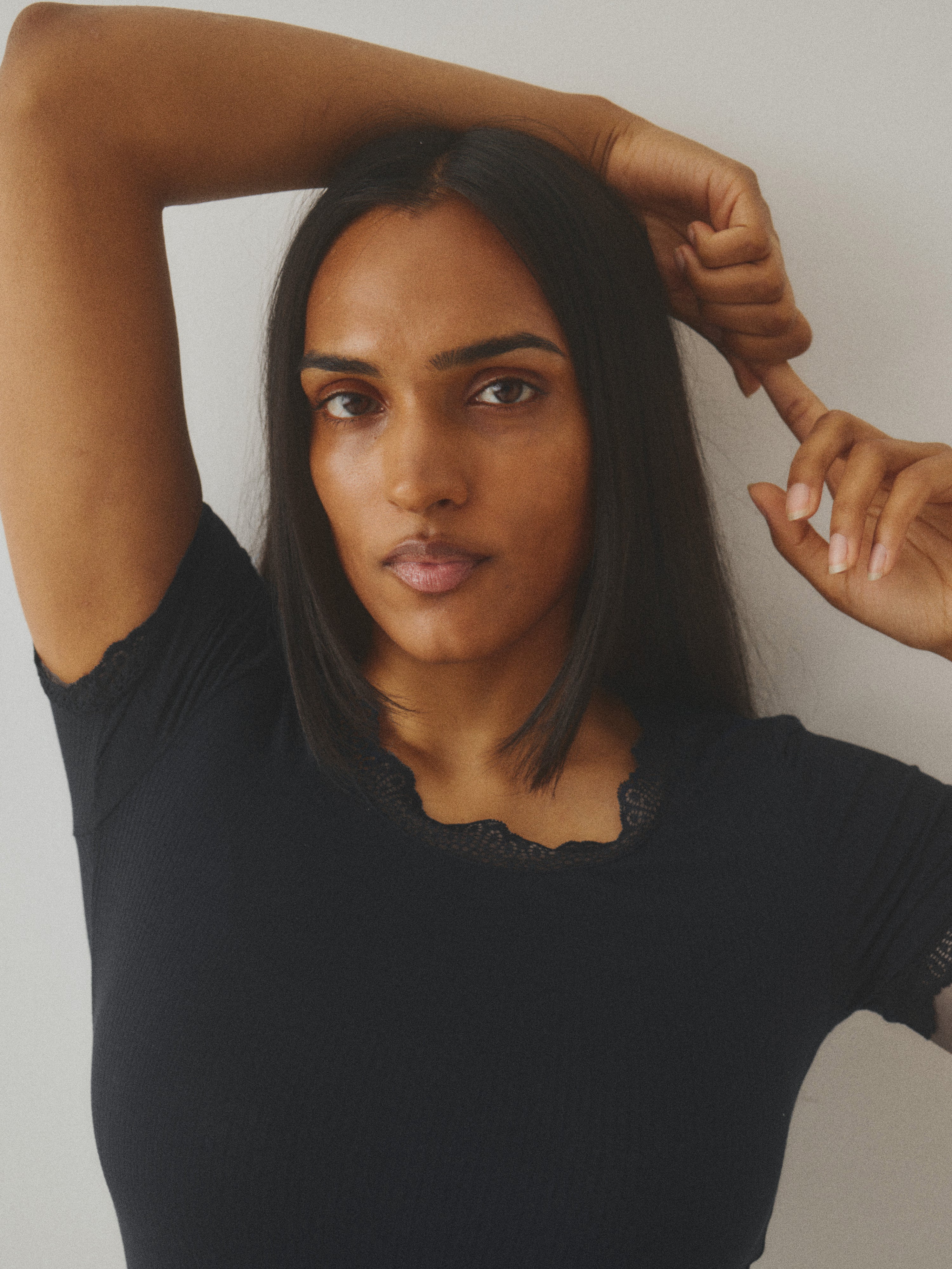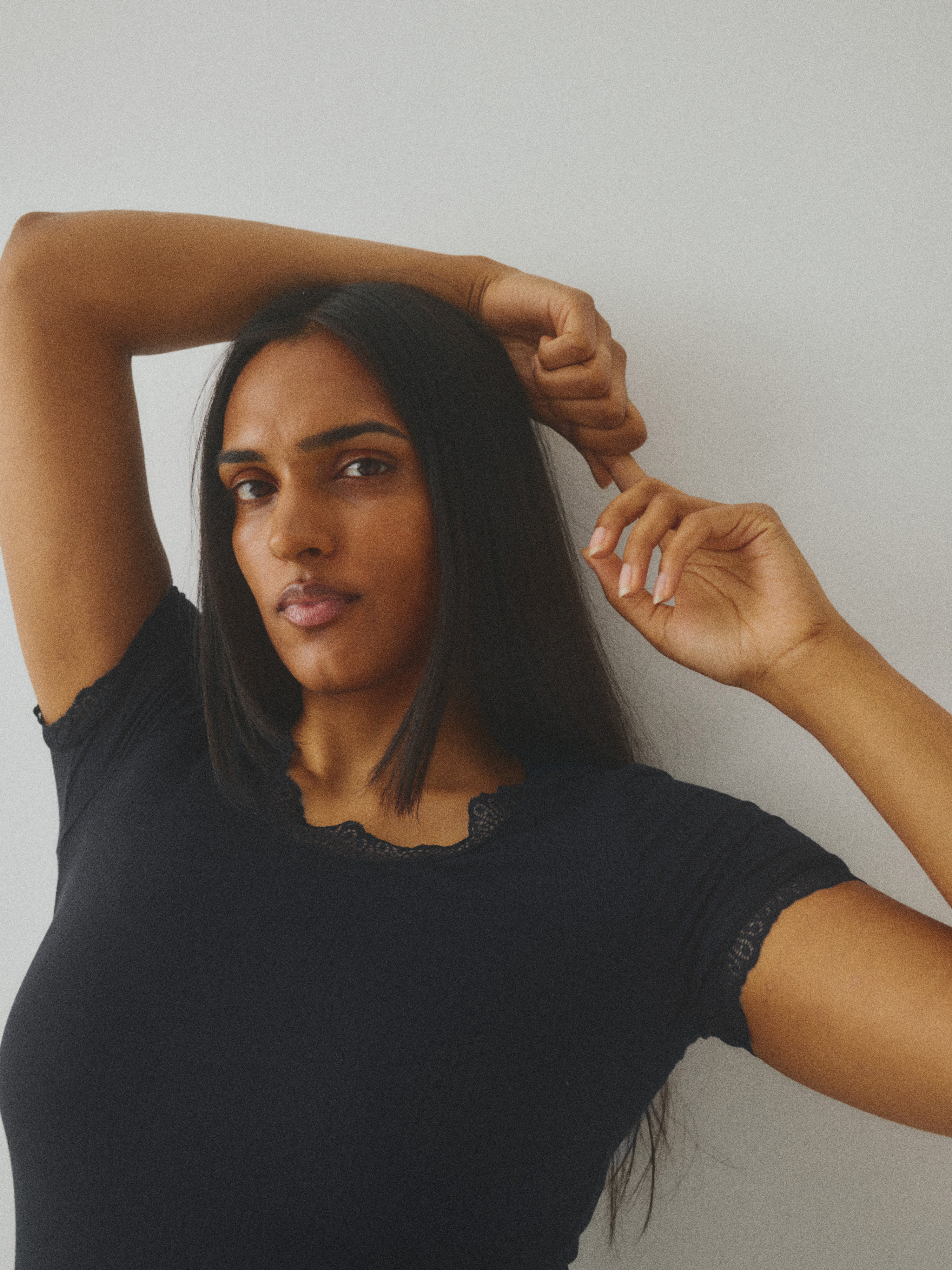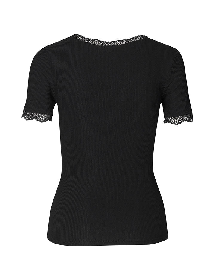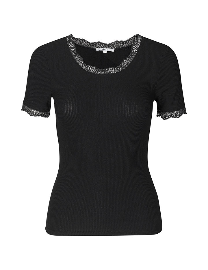 T-shirt med blondedetaljer.