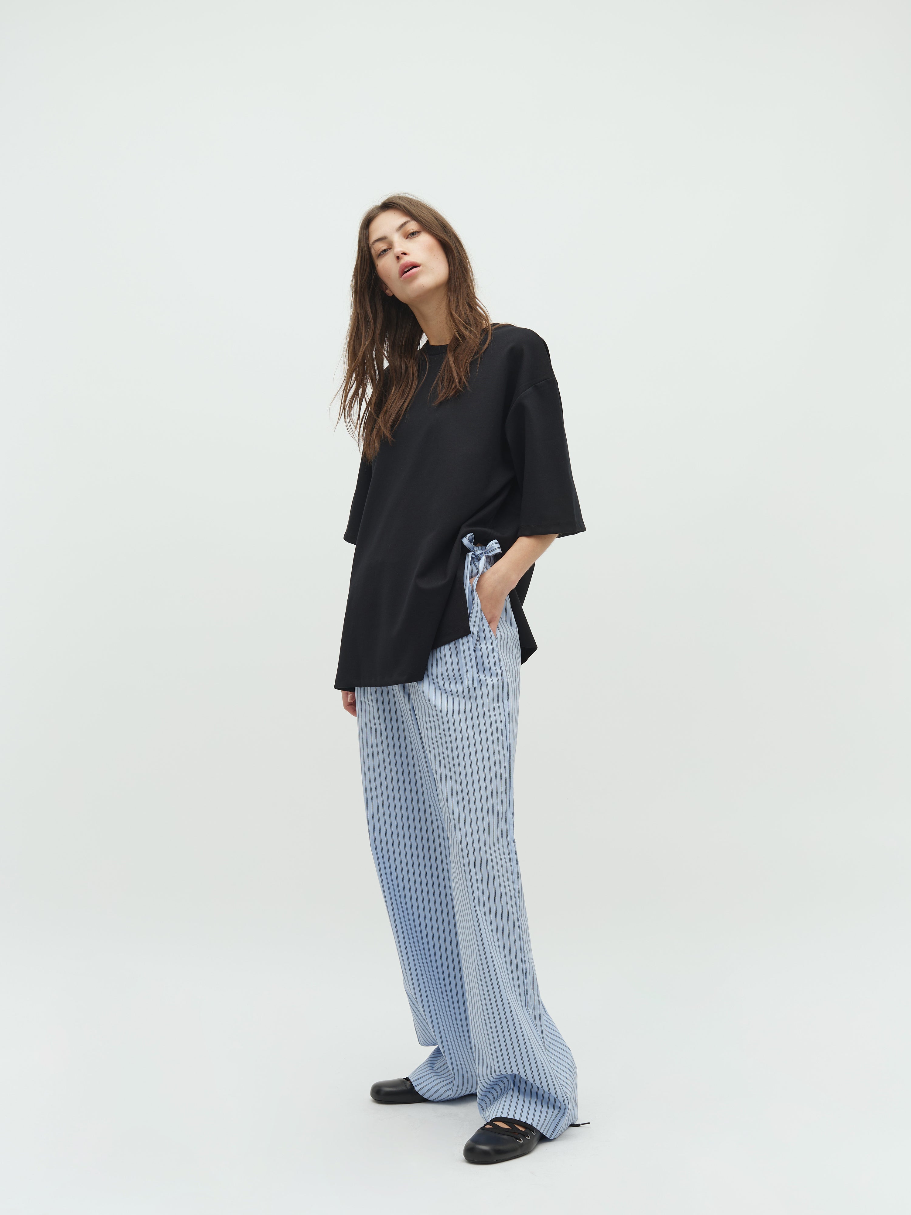 - Stryg ved lav temperatur. Vendes på vrangen ved strygning.