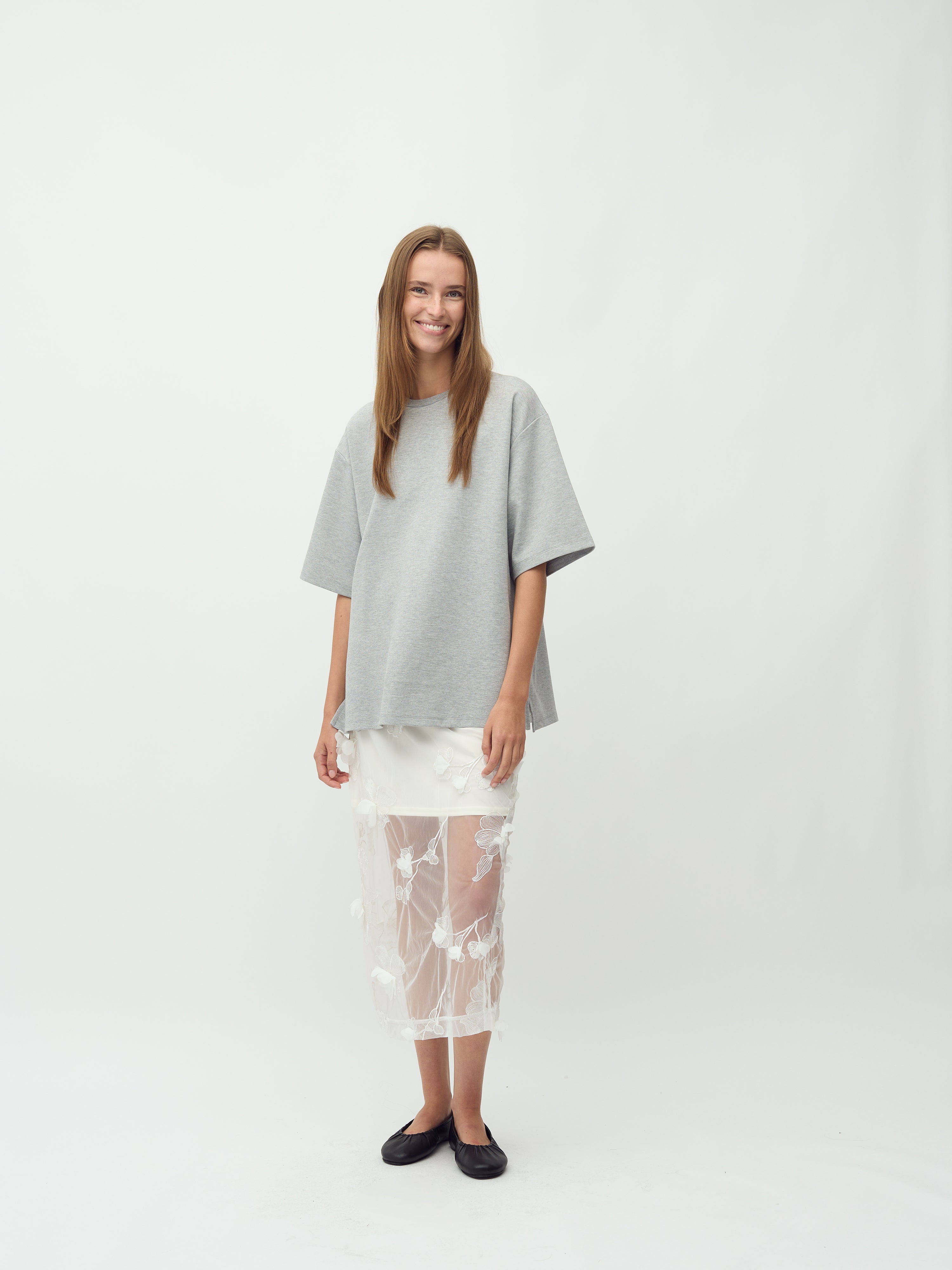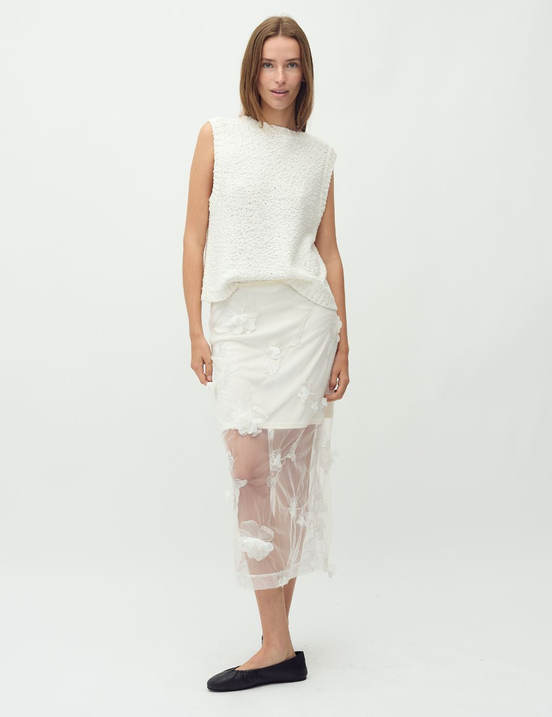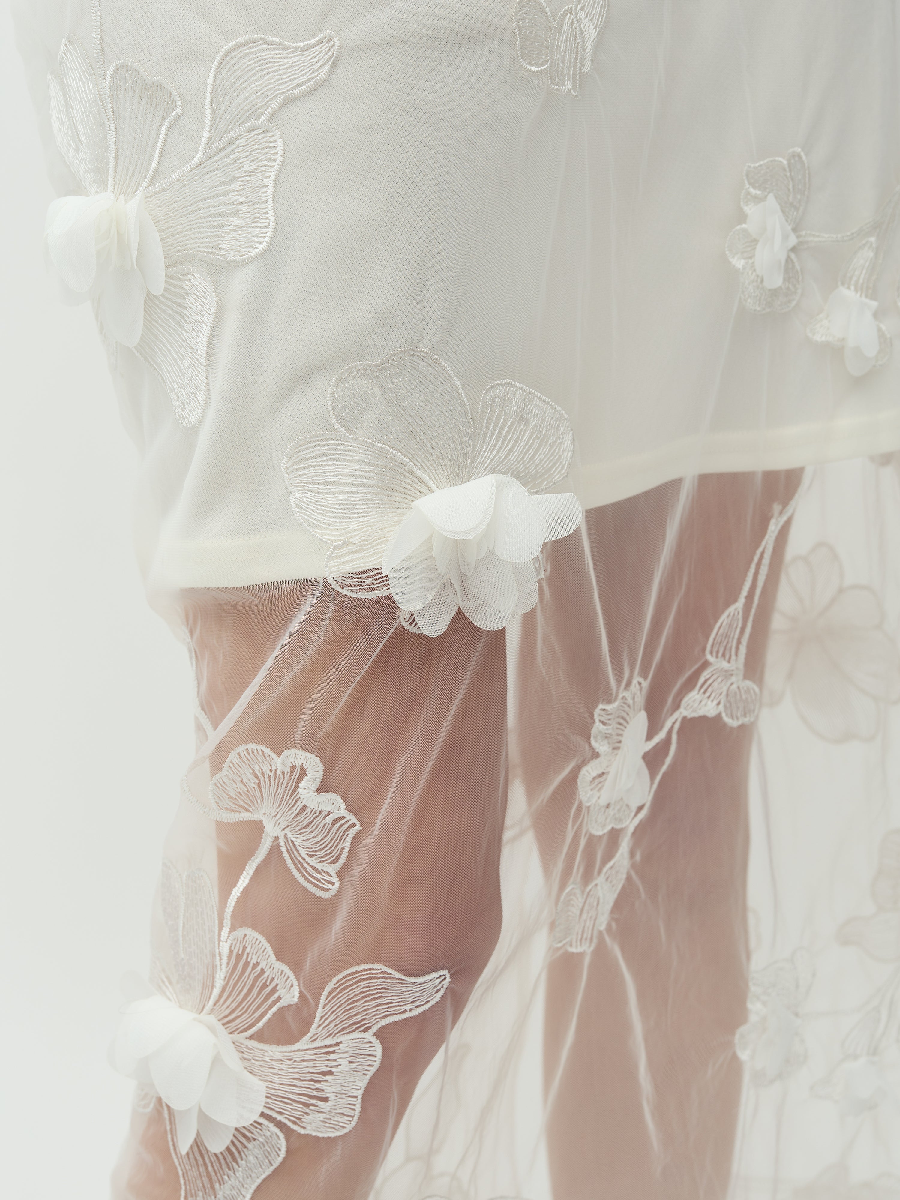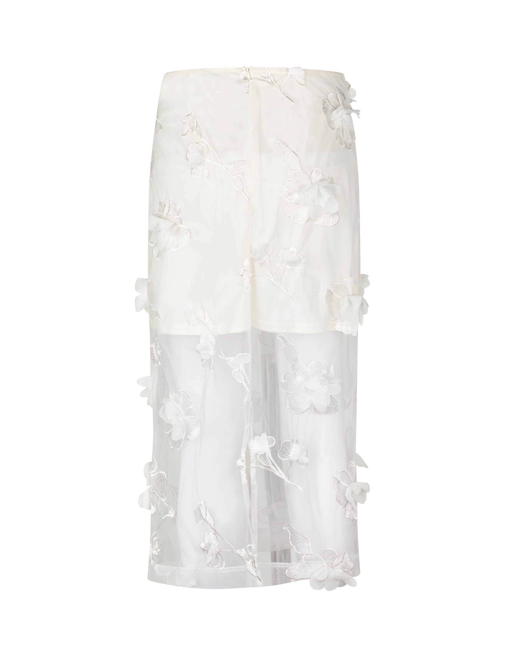 Gennemsigtig nederdel med 3D blomster.