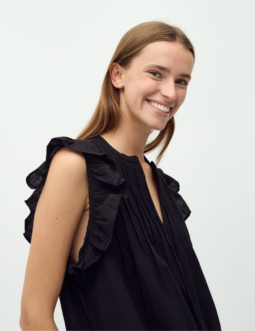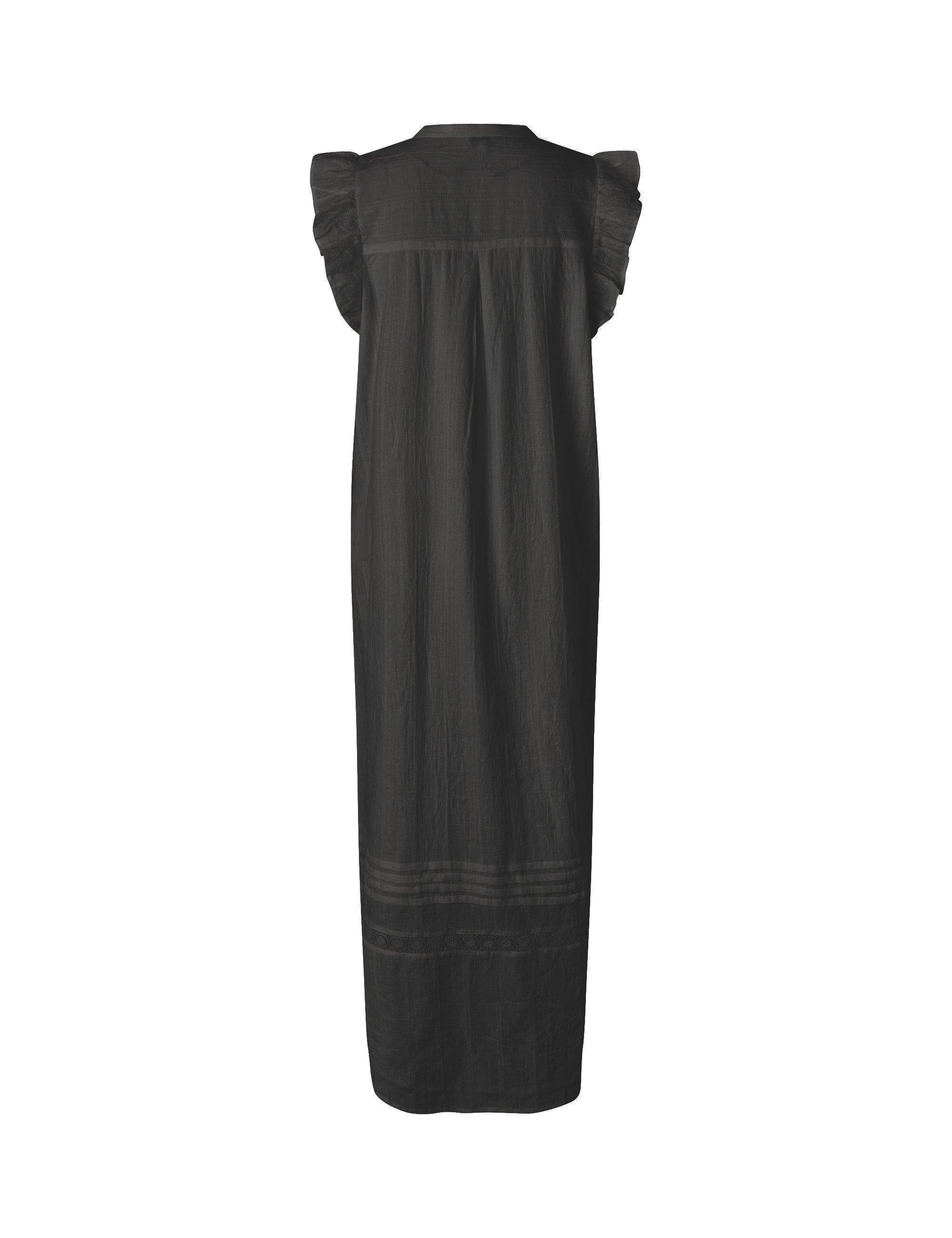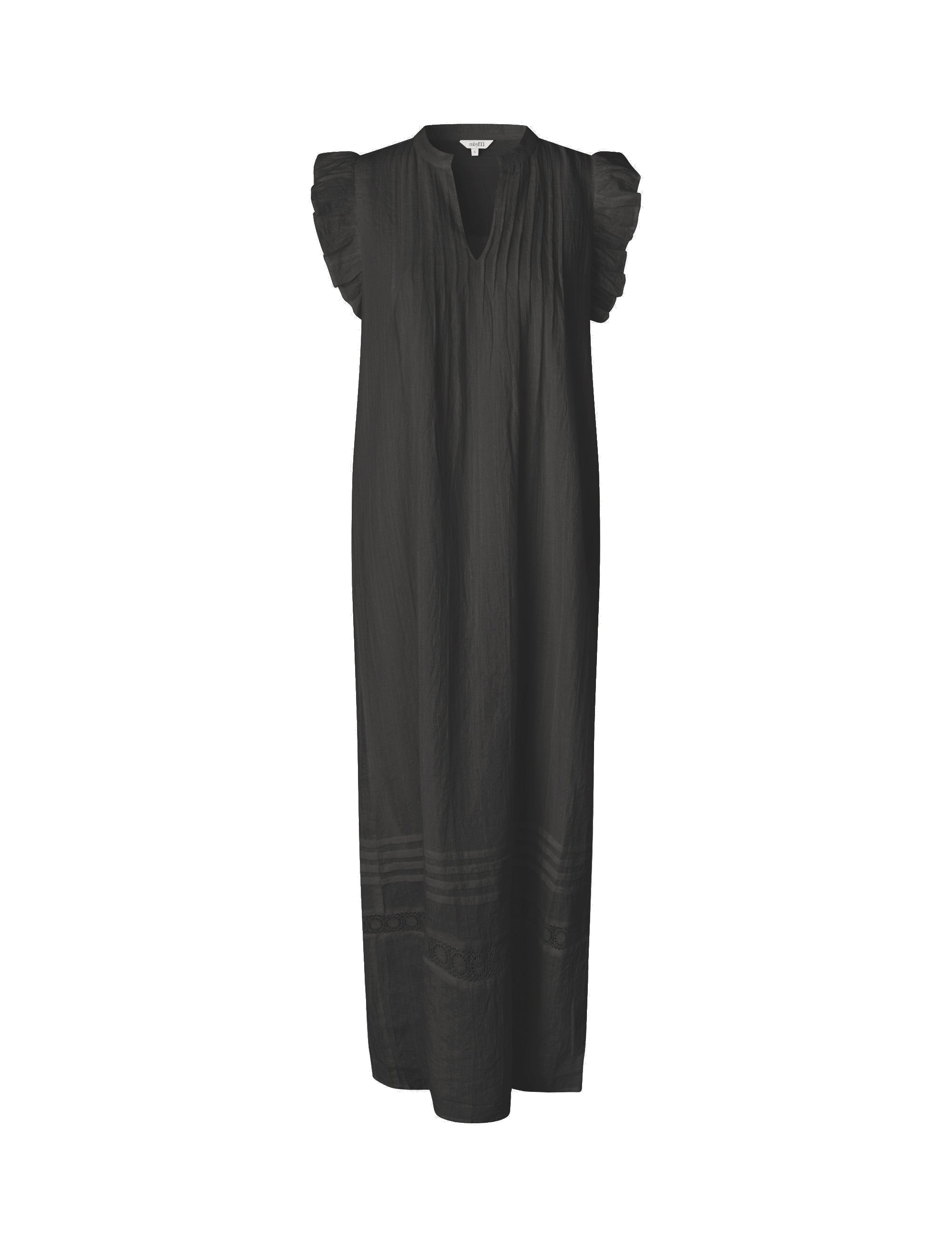 Maxi-kjole med flæsedetaljer ved skulder