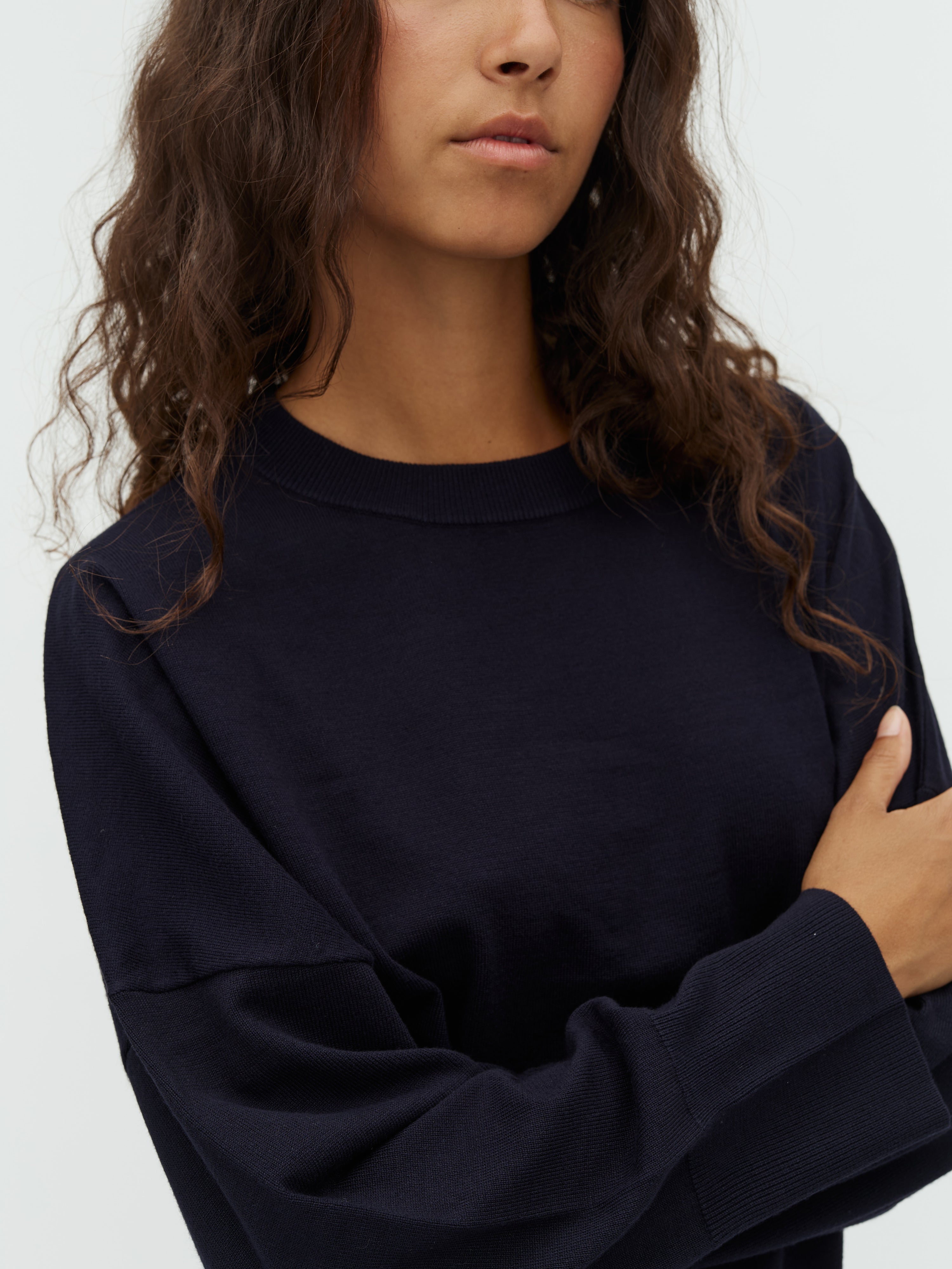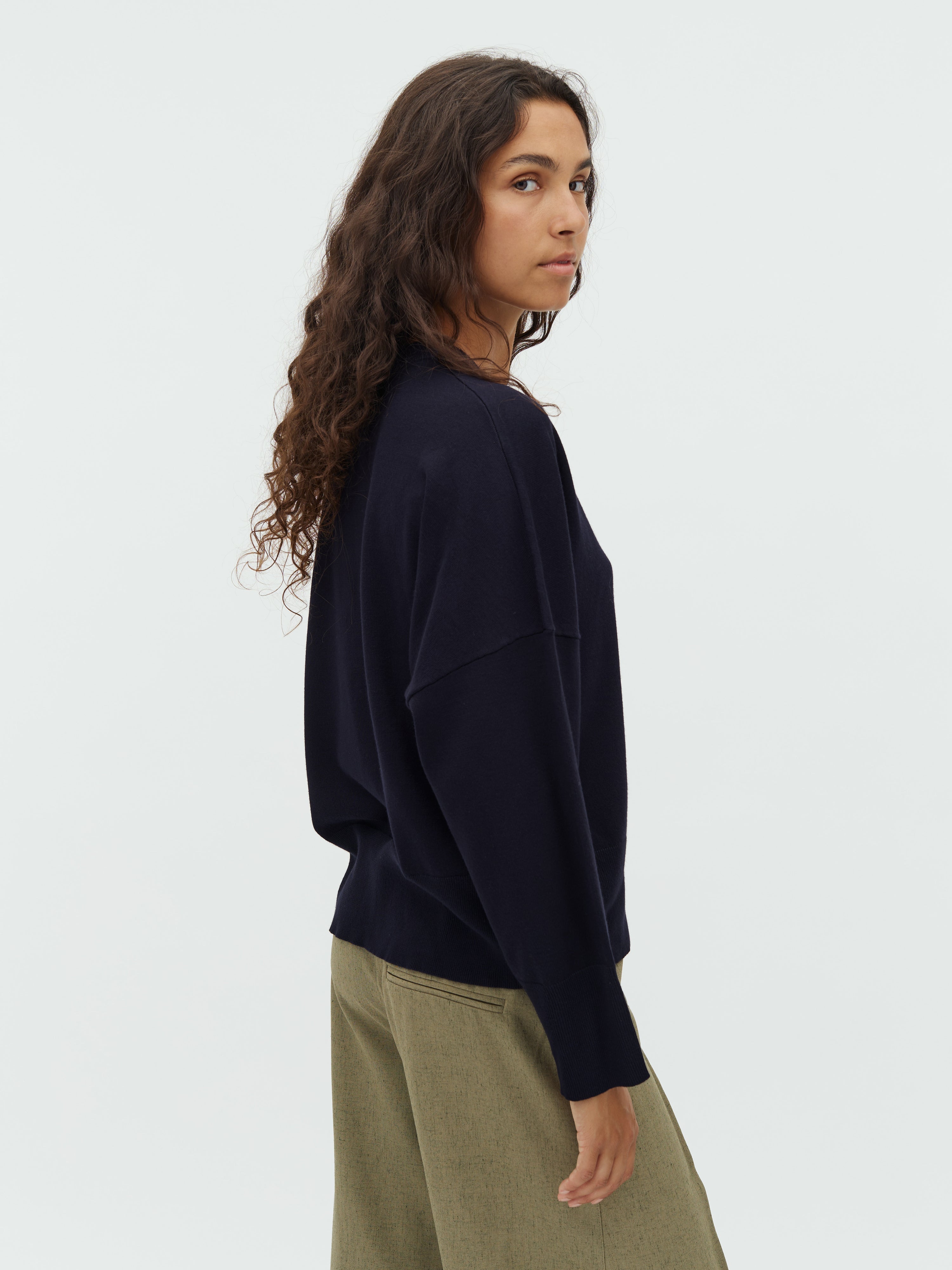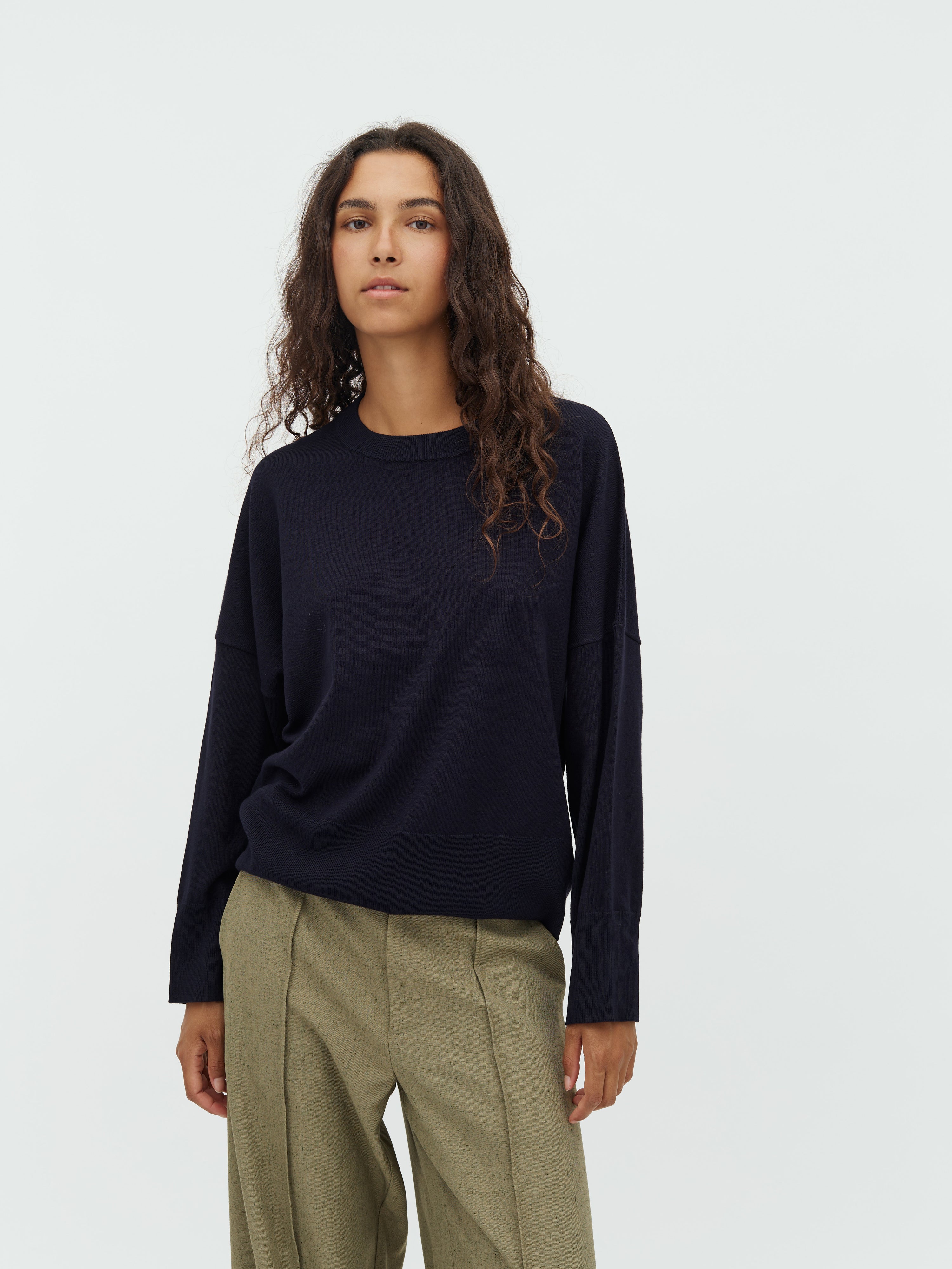 Striktrøje i løs pasform.