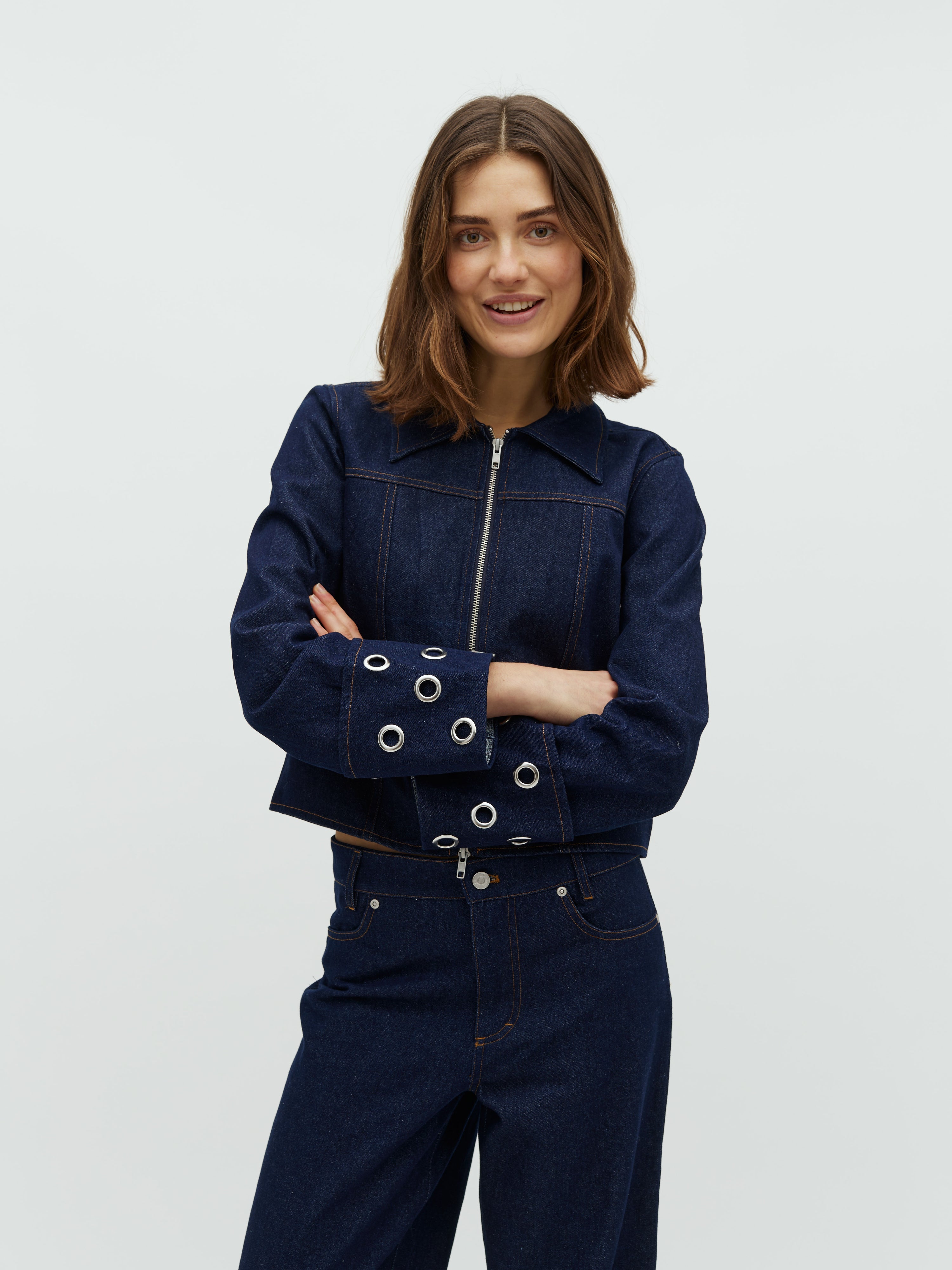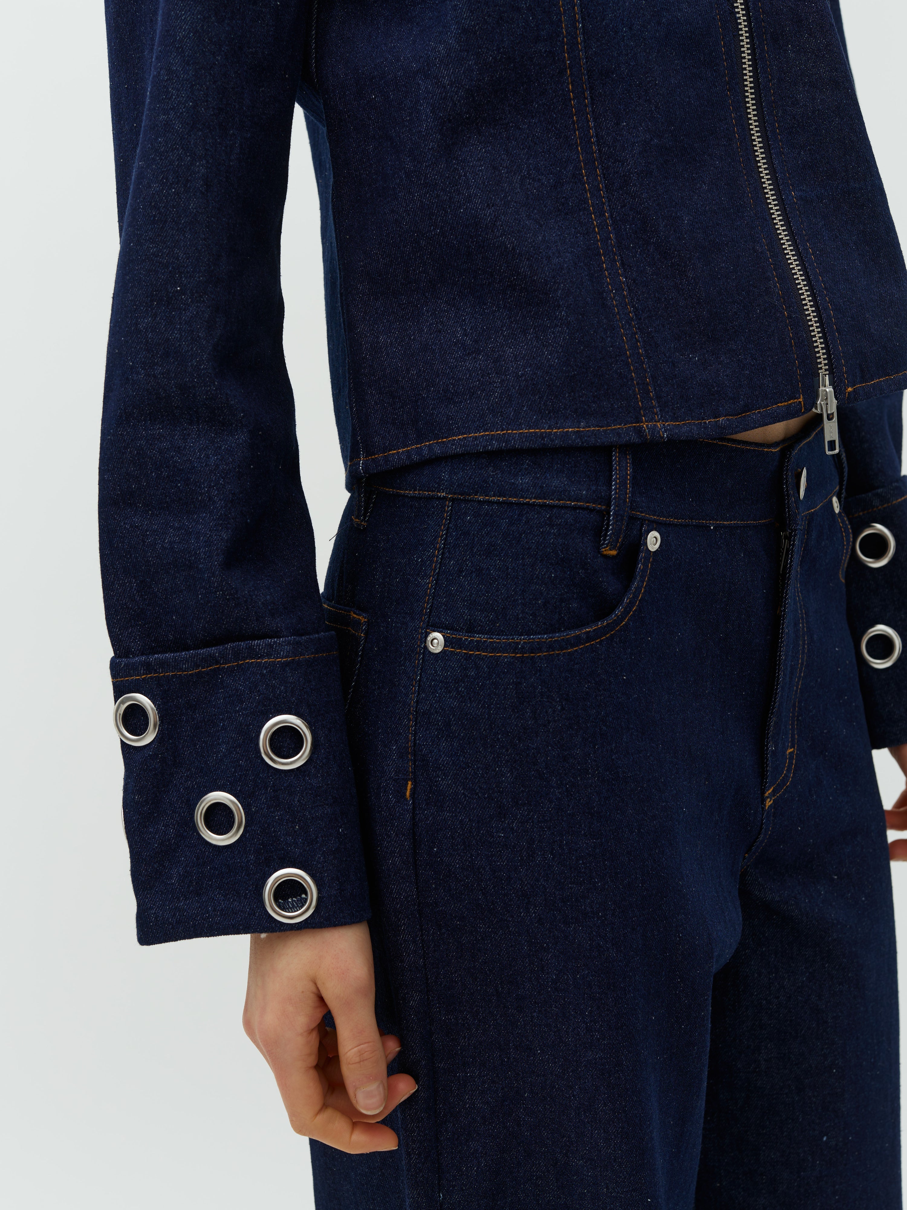 Denimjakke med eyelet-detaljer