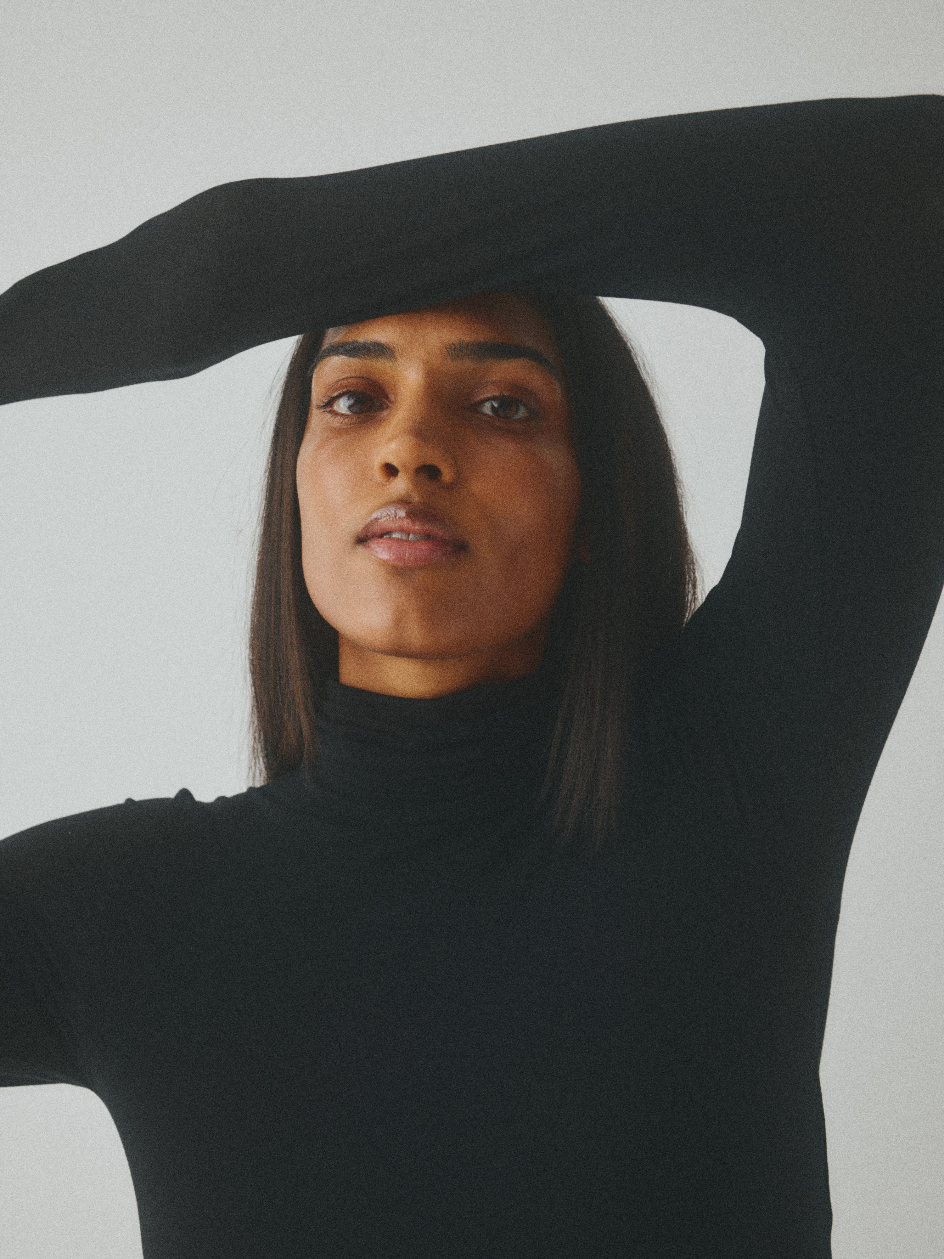 Langærmet basisbluse med rullekrave.