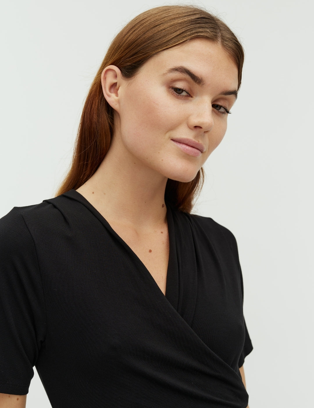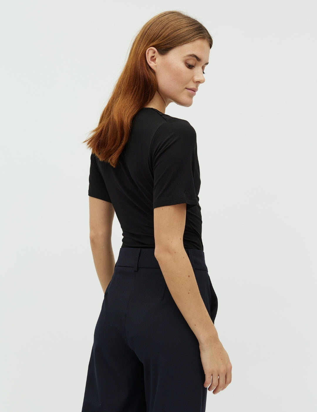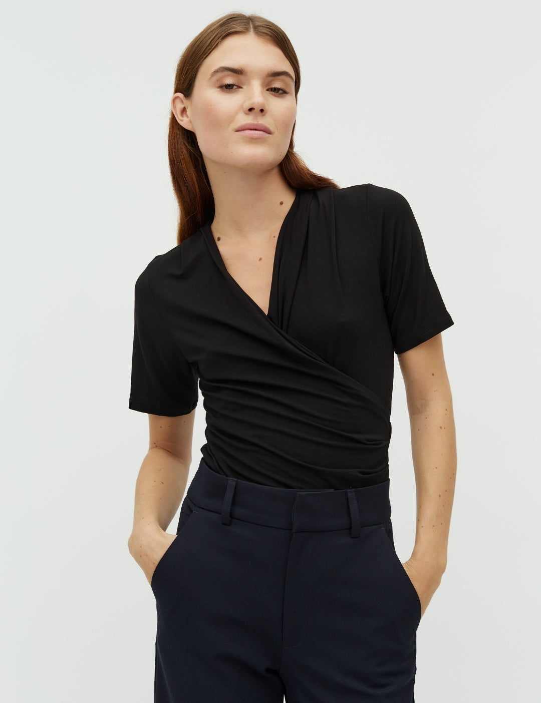 - Stryg ved lav temperatur. Vendes på vrangen ved strygning.