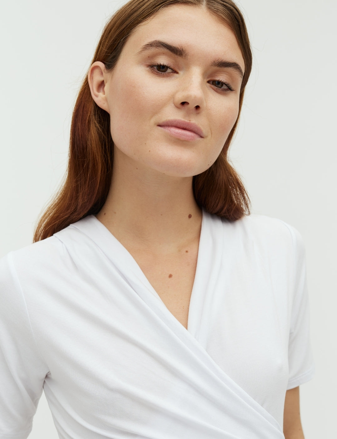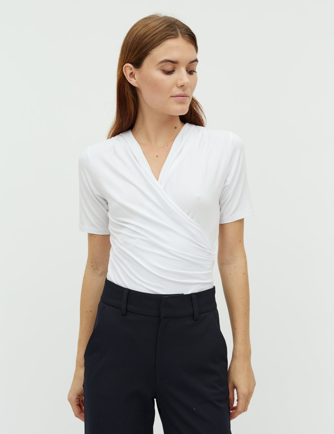 - Stryg ved lav temperatur. Vendes på vrangen ved strygning.