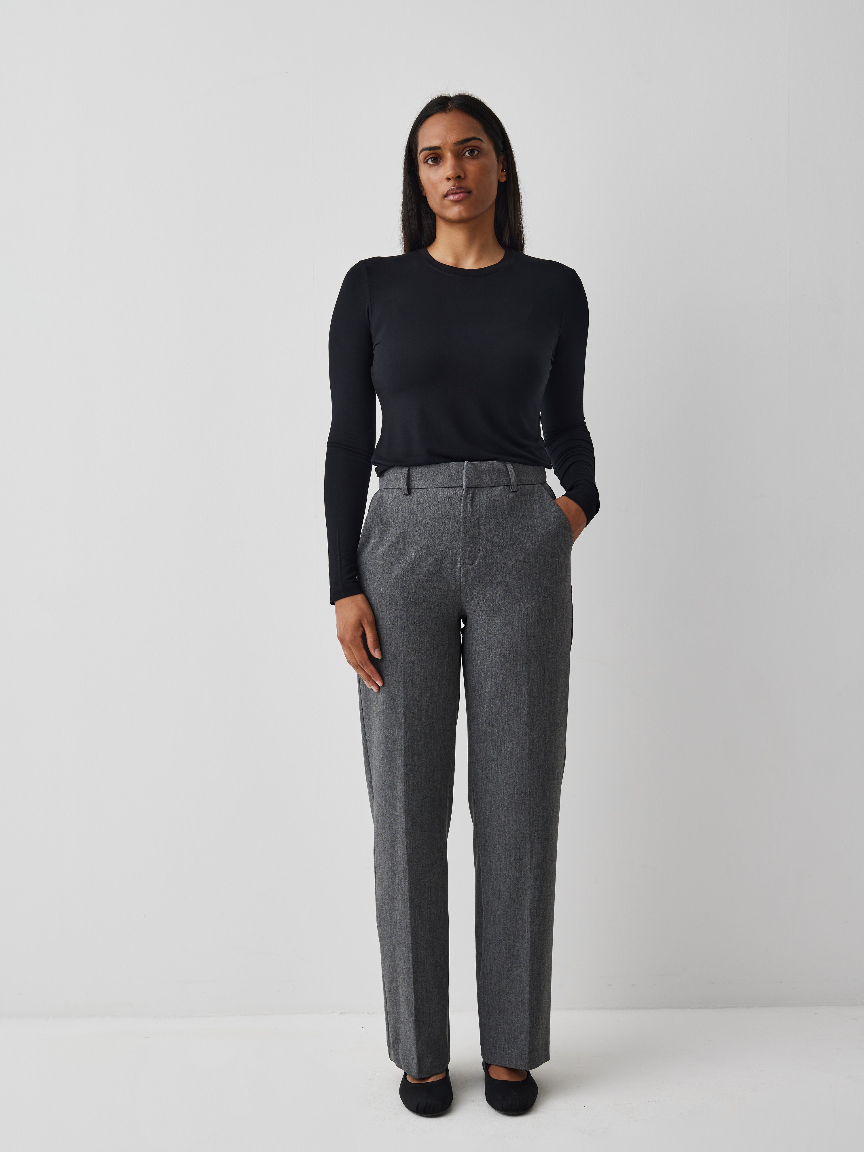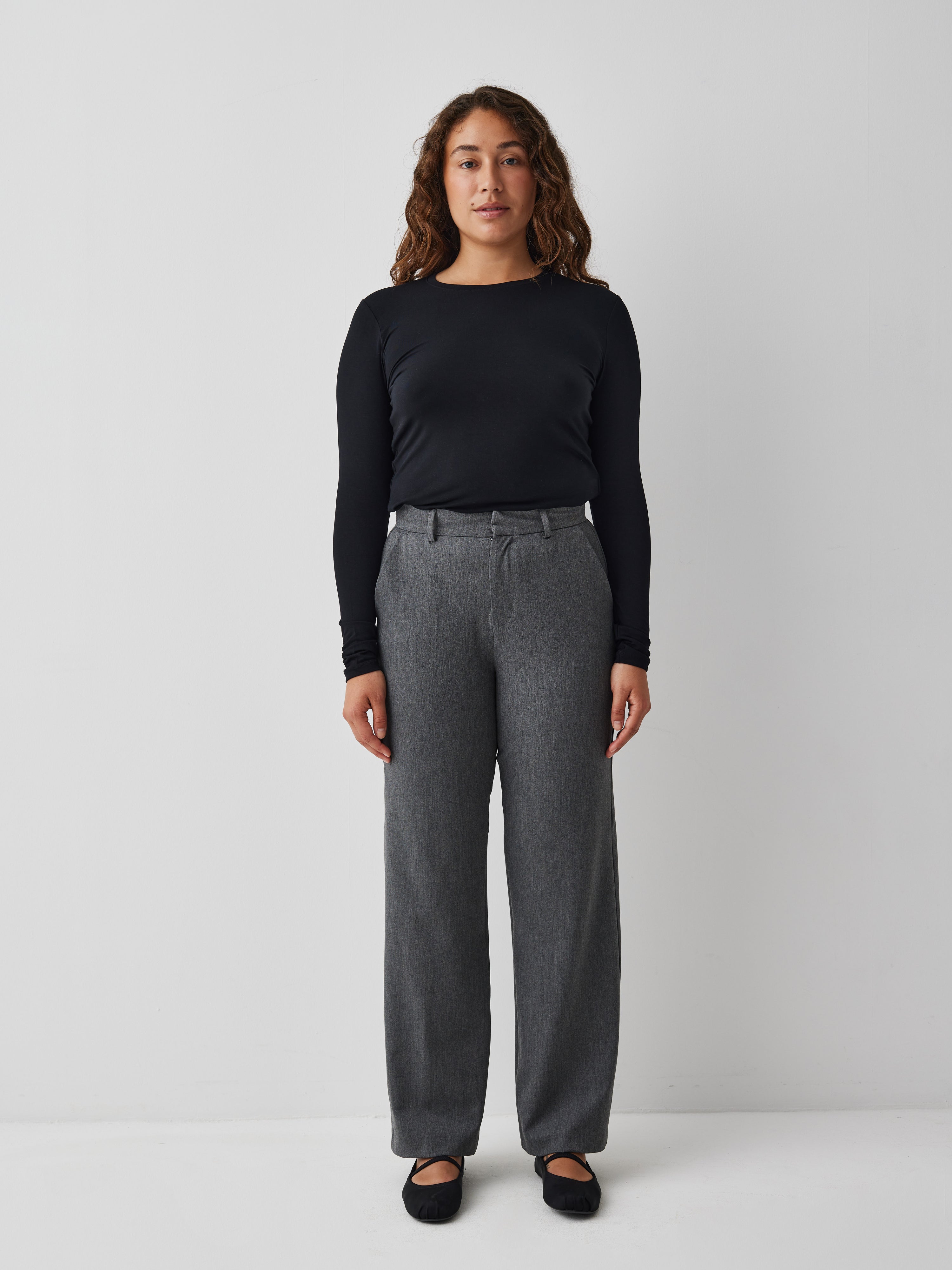 - Stryg ved lav temperatur. Vendes på vrangen ved strygning.
