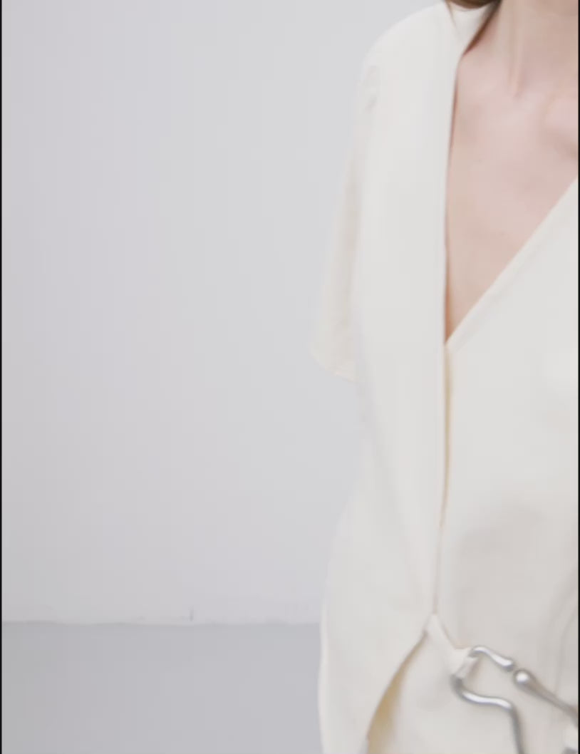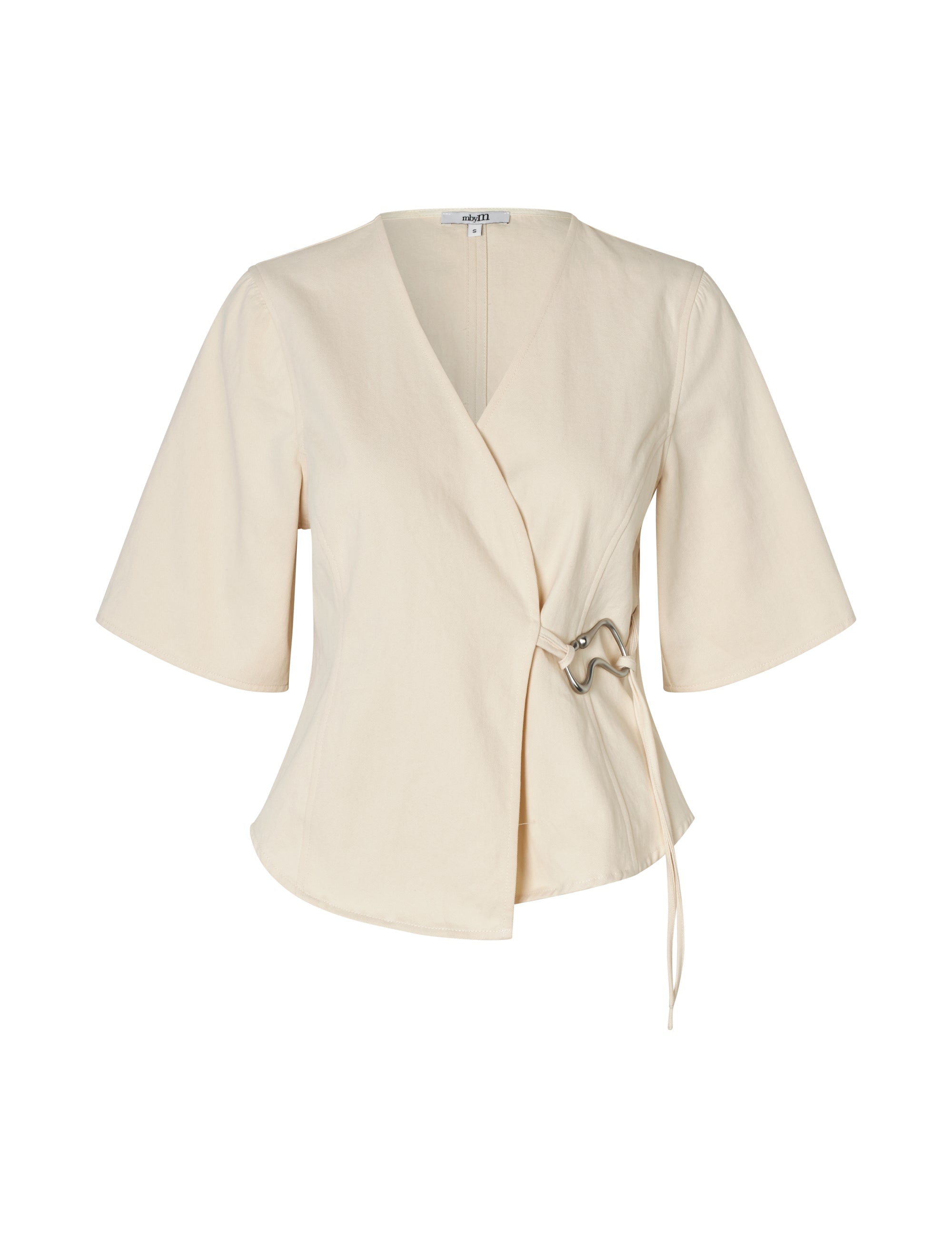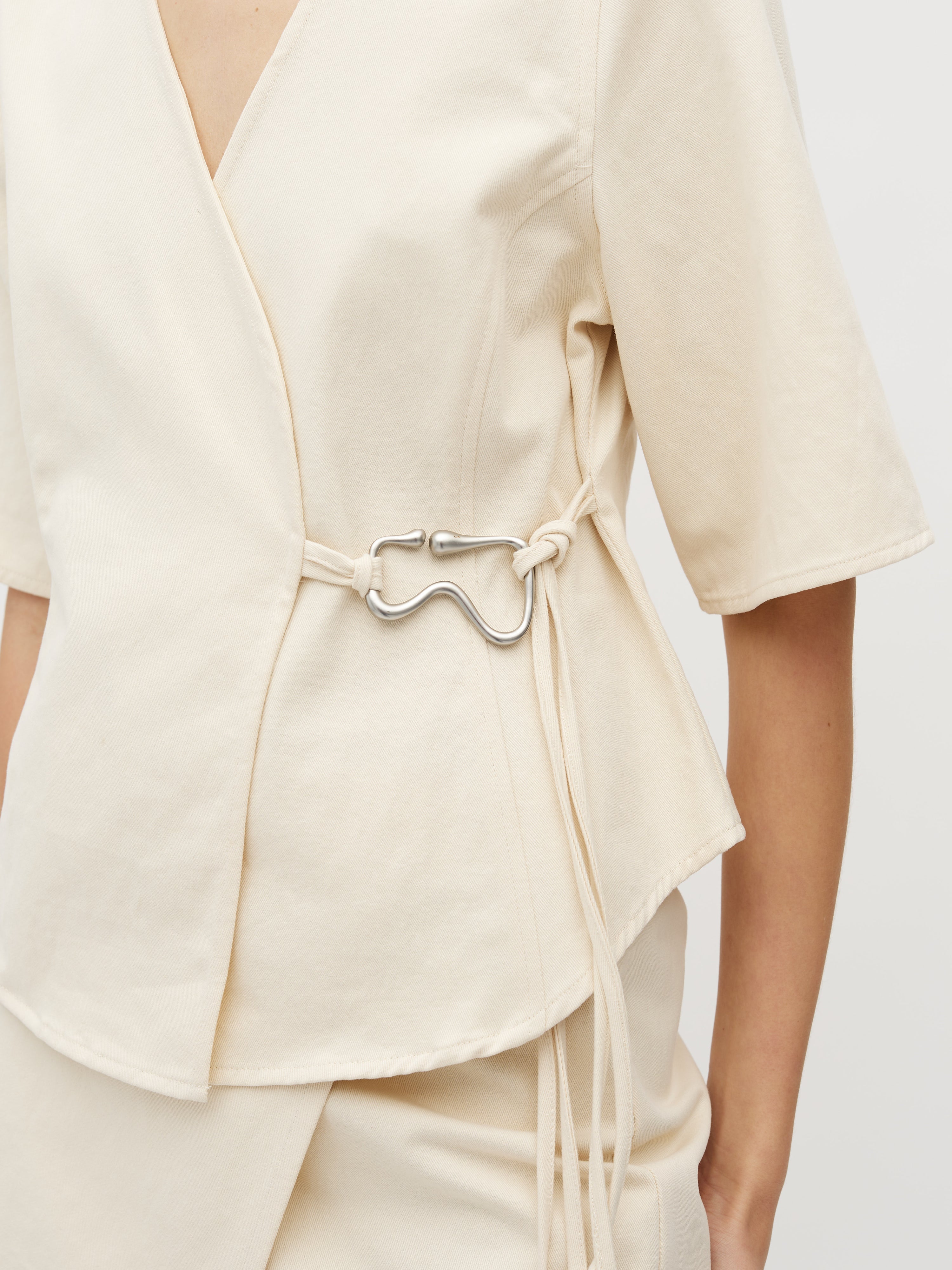 Slå-om bluse med bæltespænde.