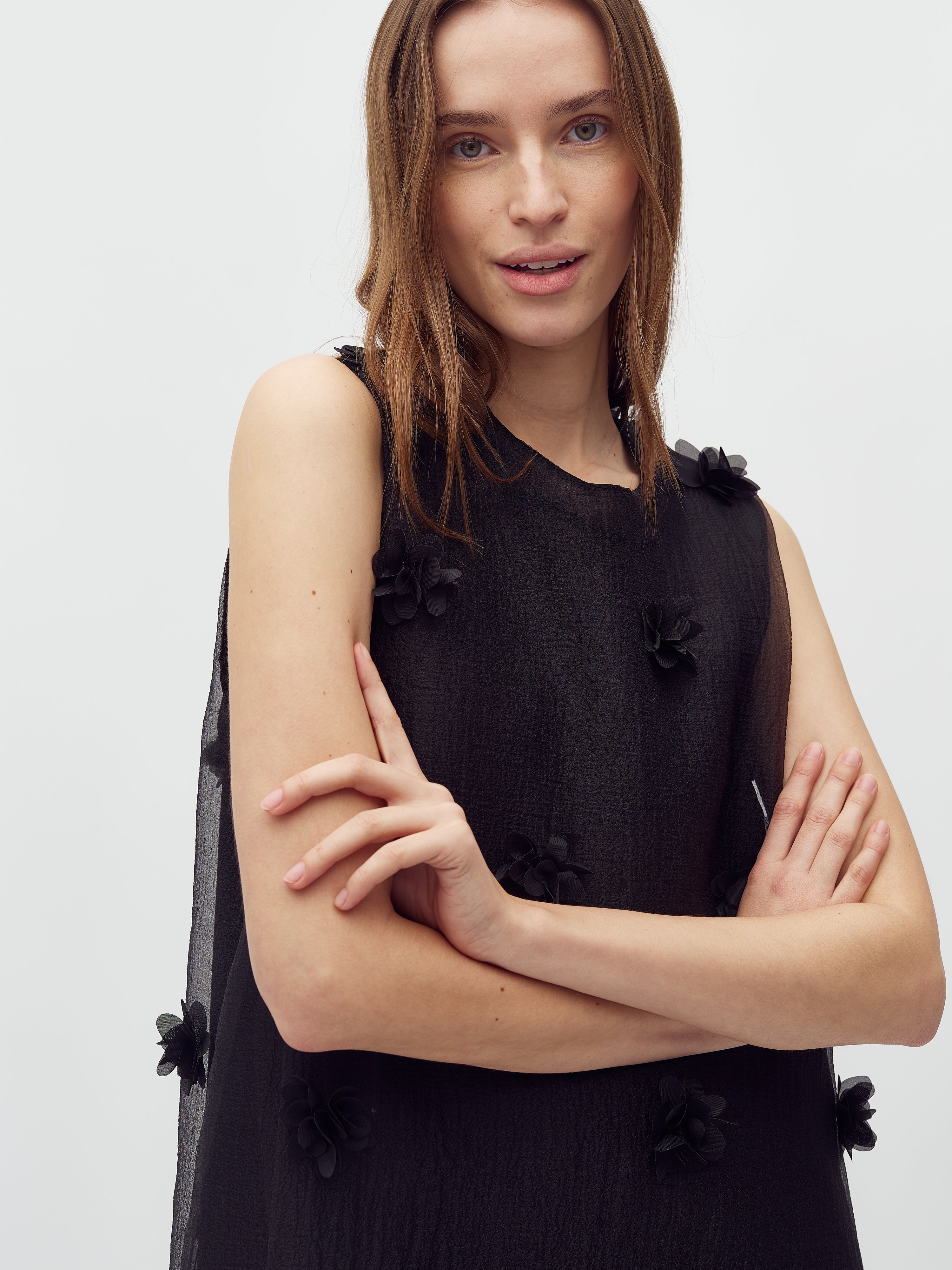 Kjole med 3D blomster.