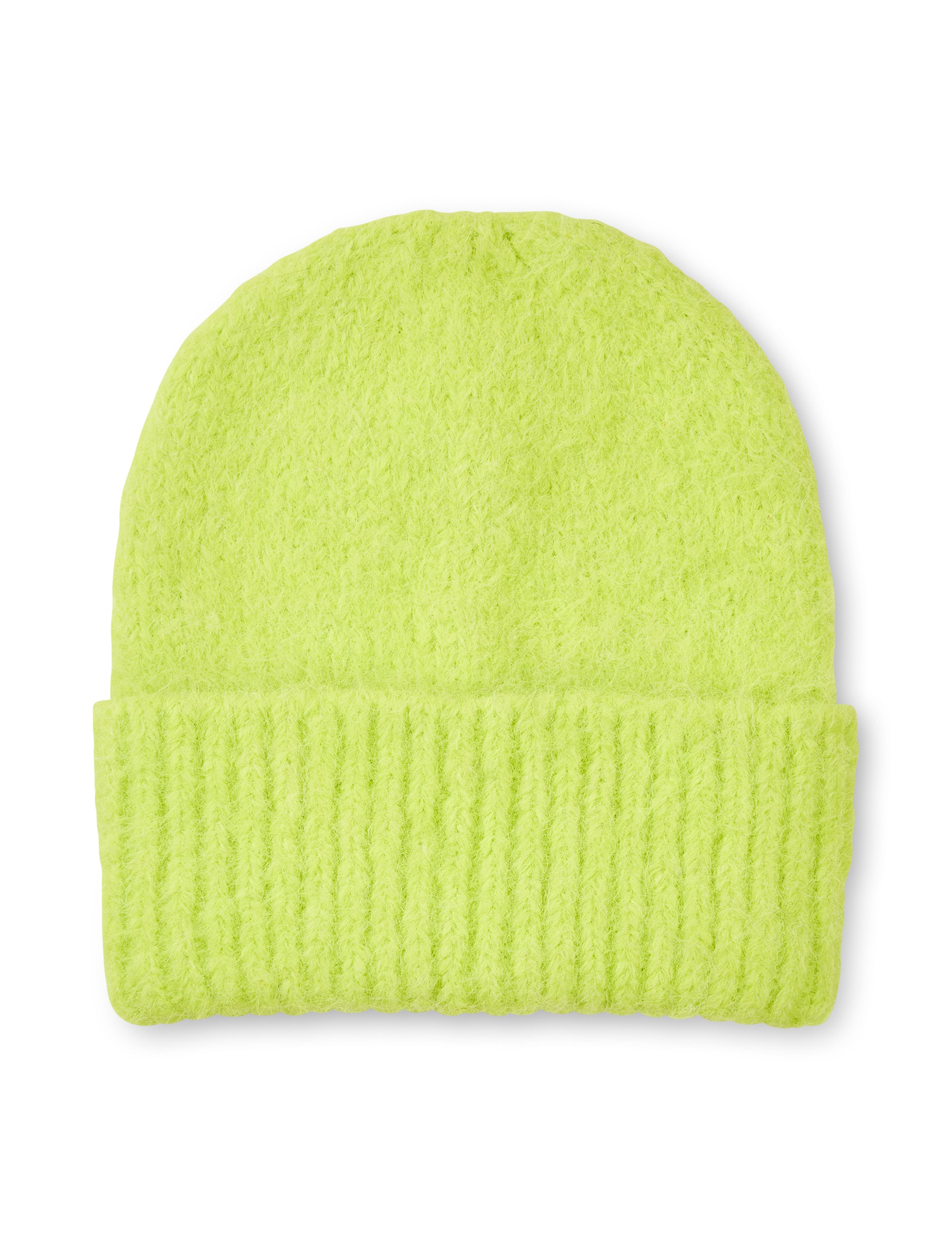 Strikket hat med opbræt i et børstet materiale.