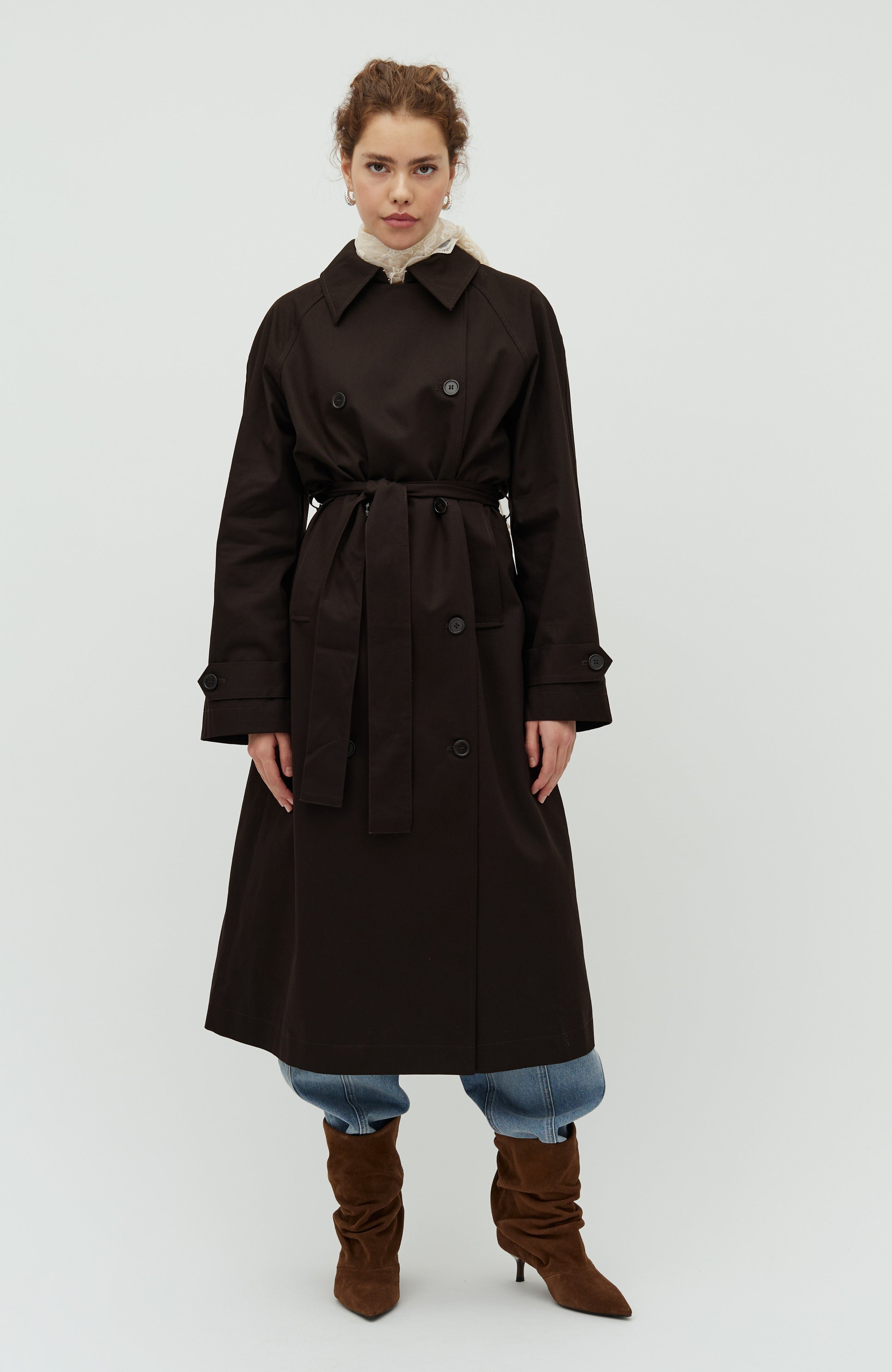 Midi-trenchcoat med aftageligt bindebånd.