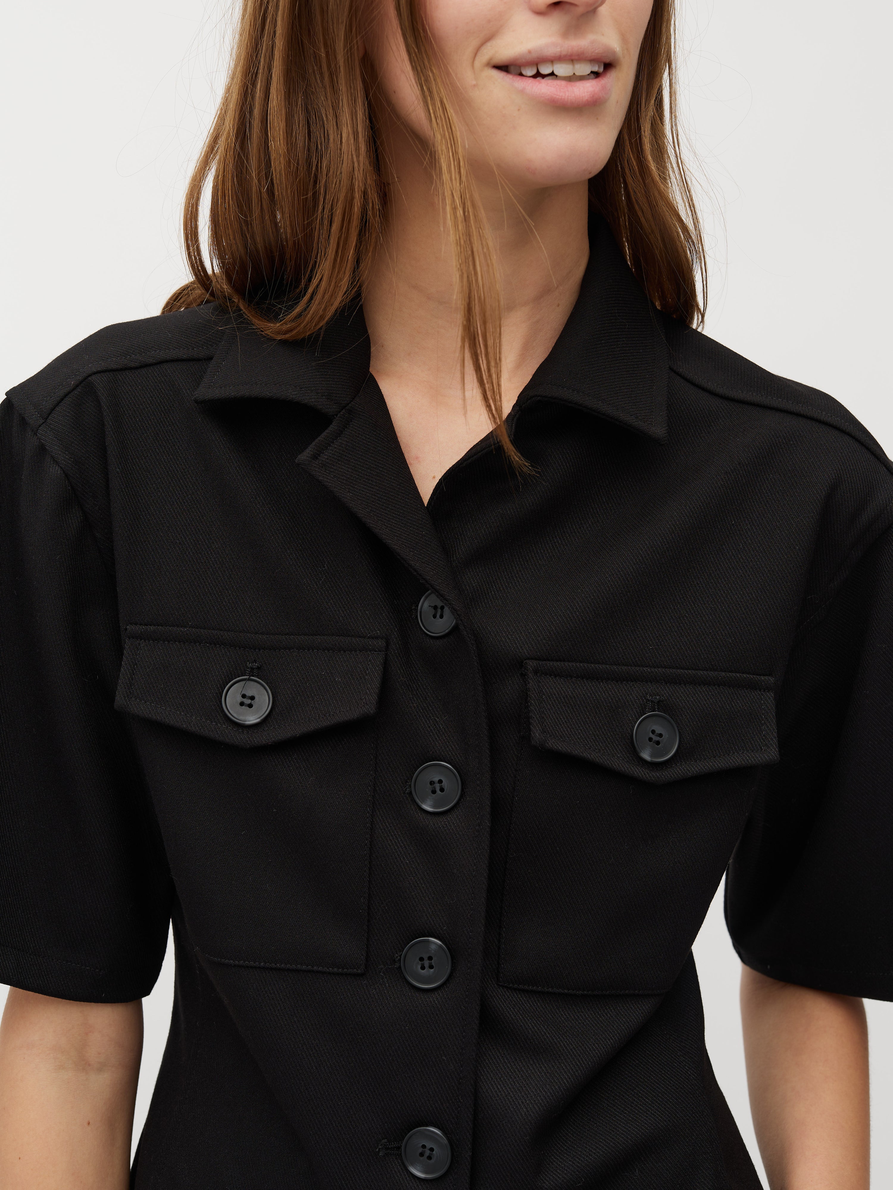 Skjortebluse med korte ærmer.
