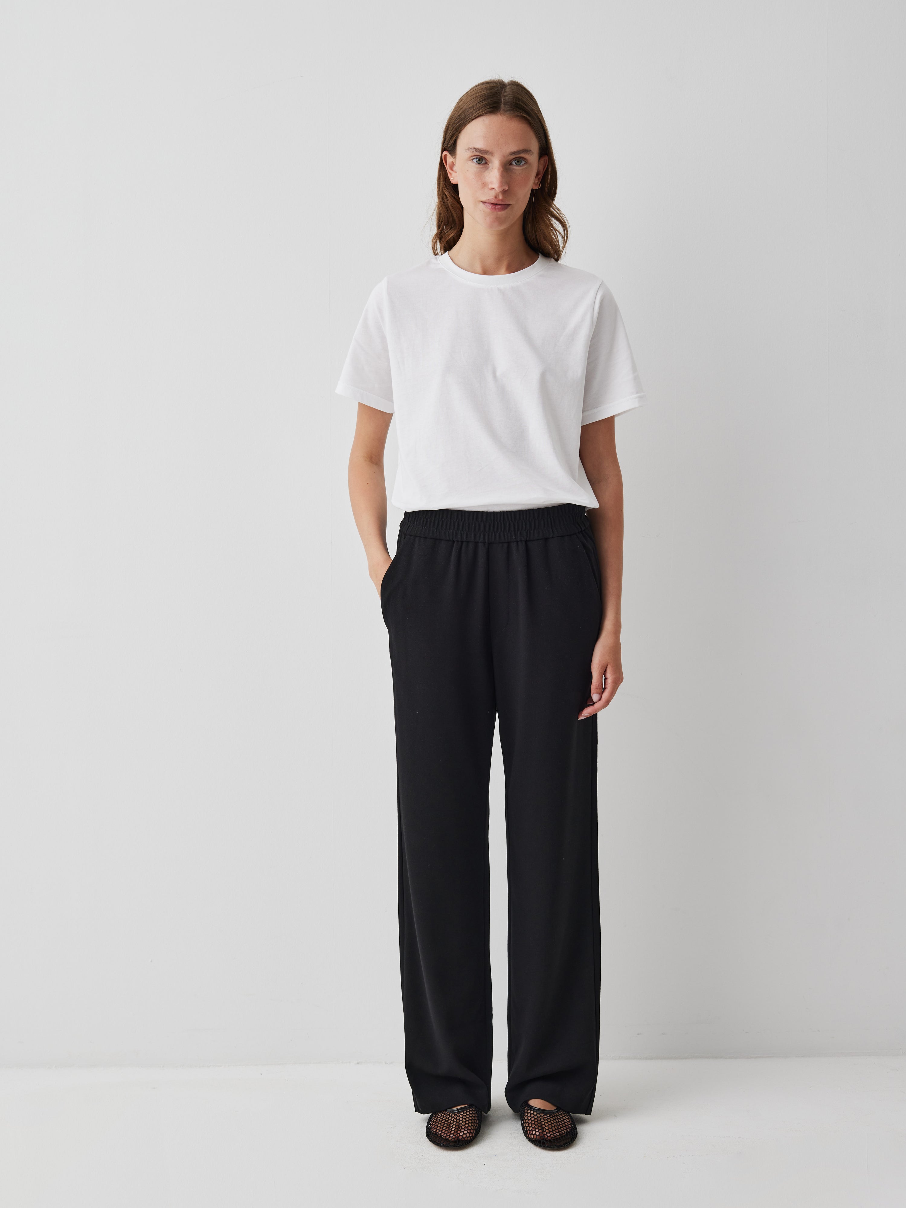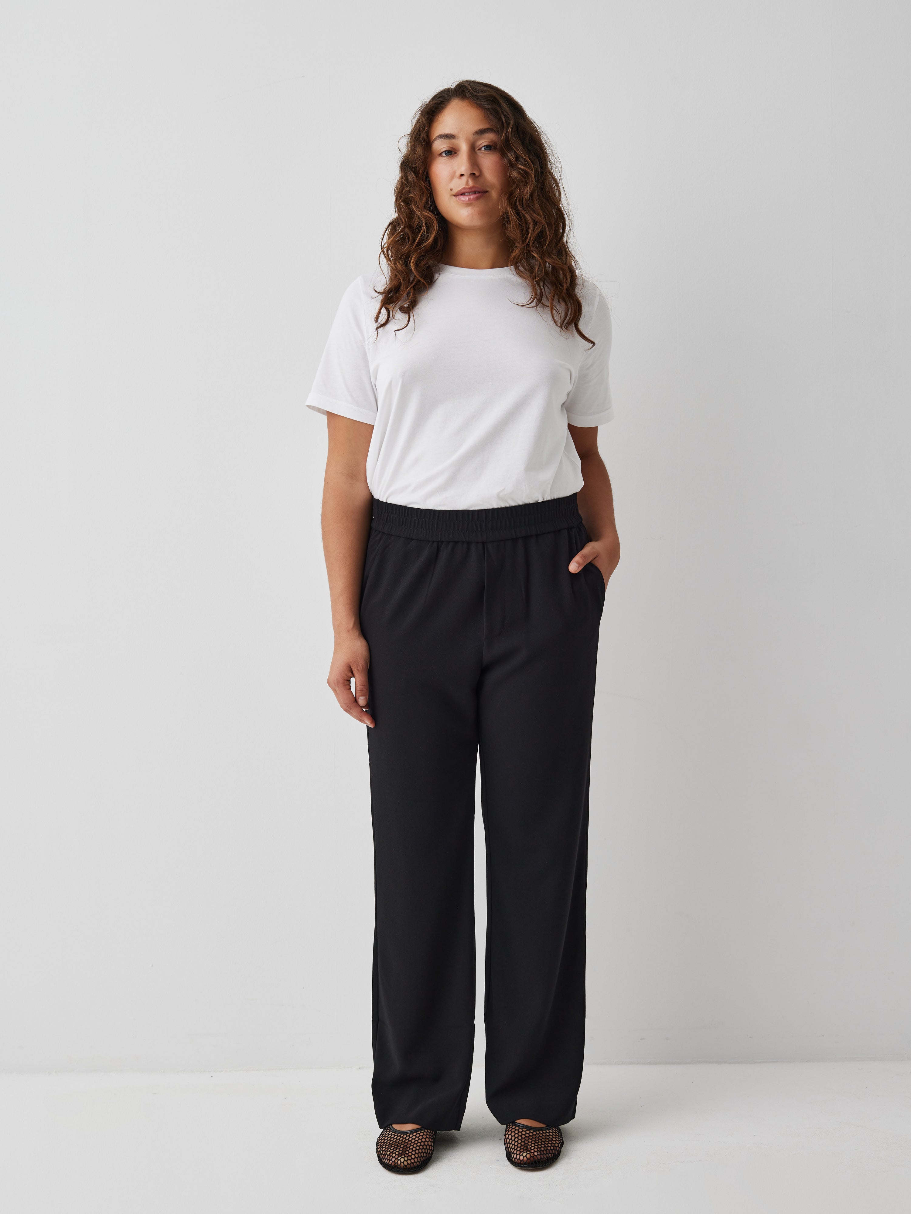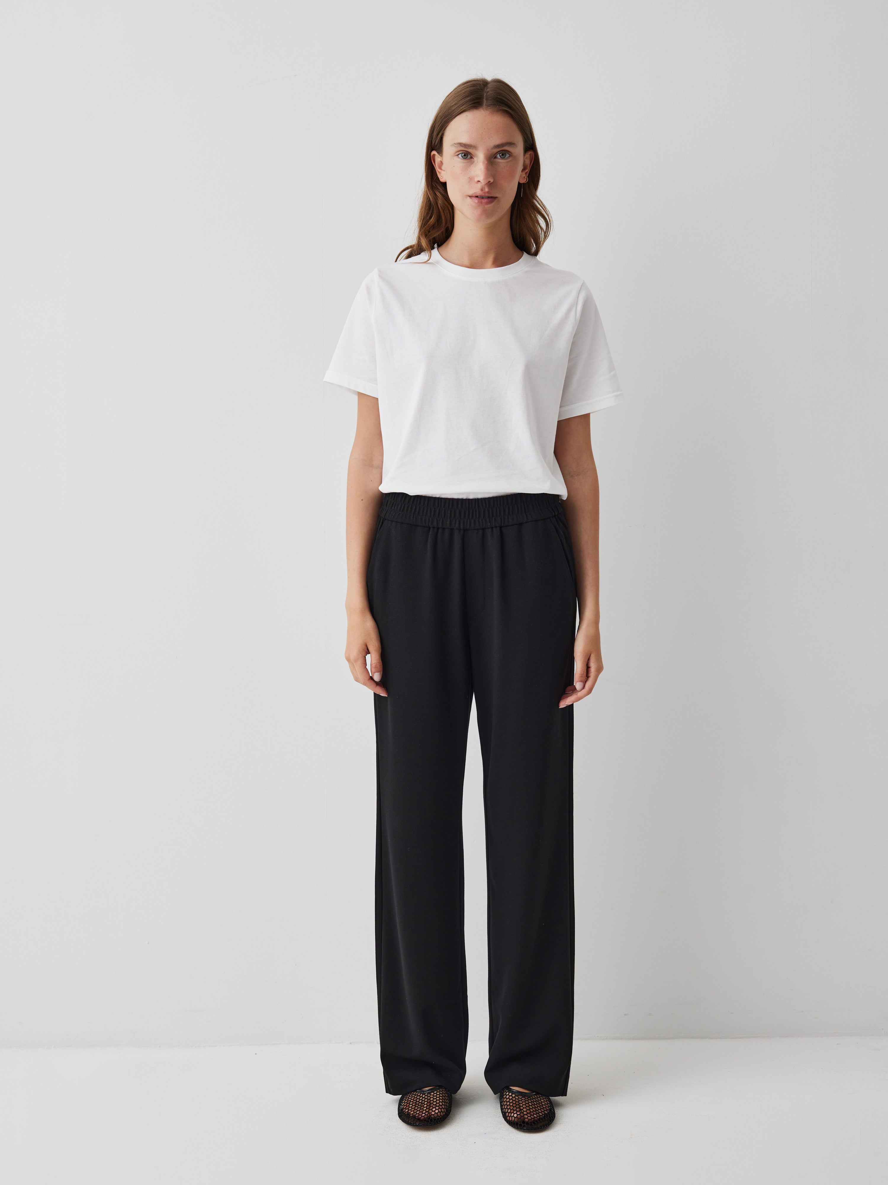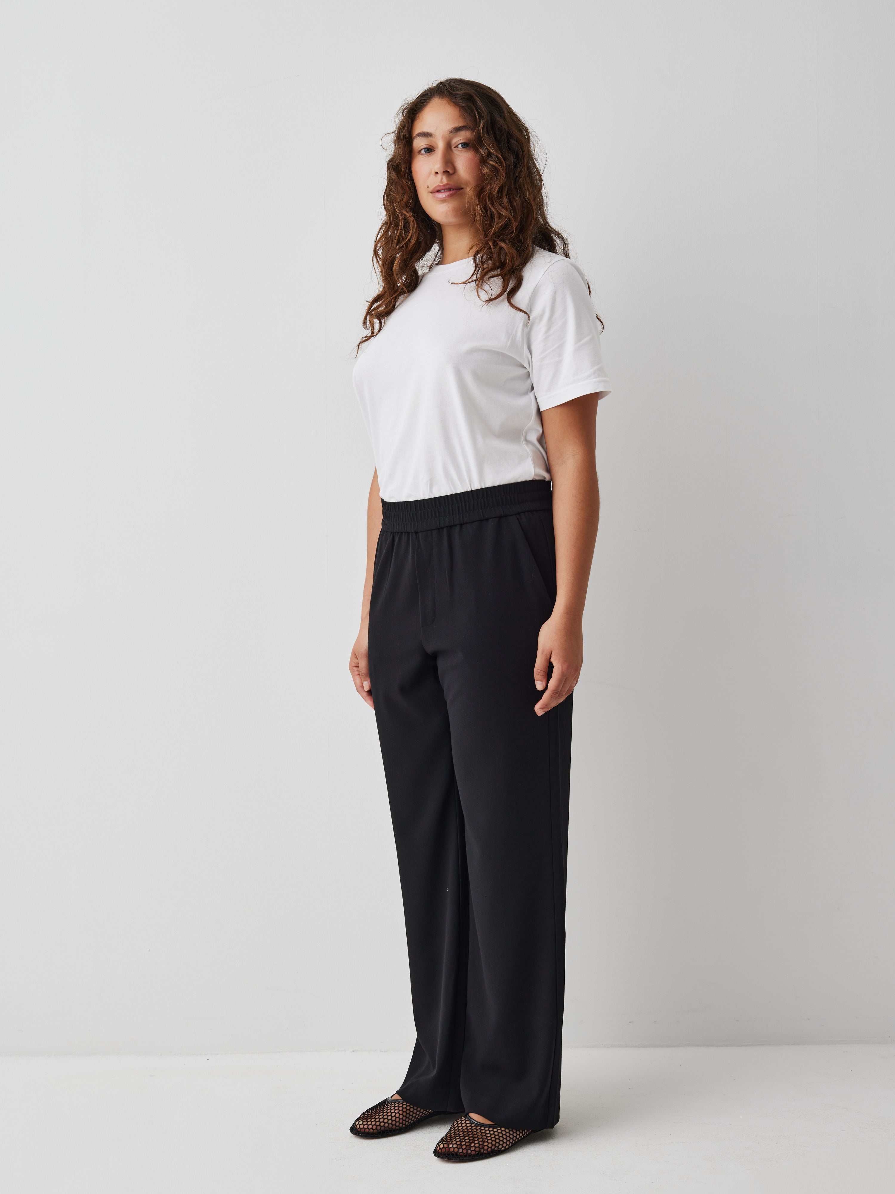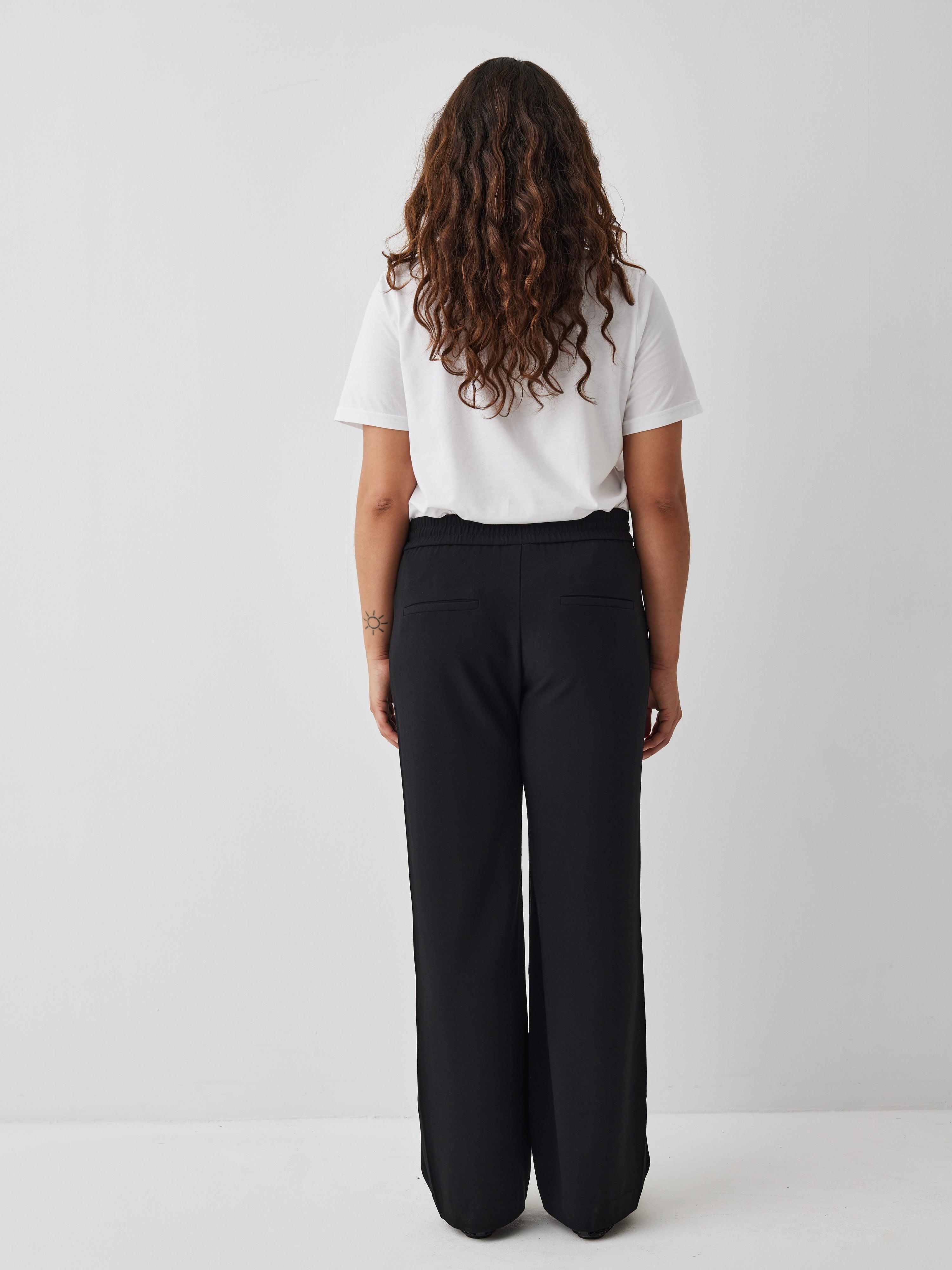 - Stryg ved lav temperatur. Vendes på vrangen ved strygning.