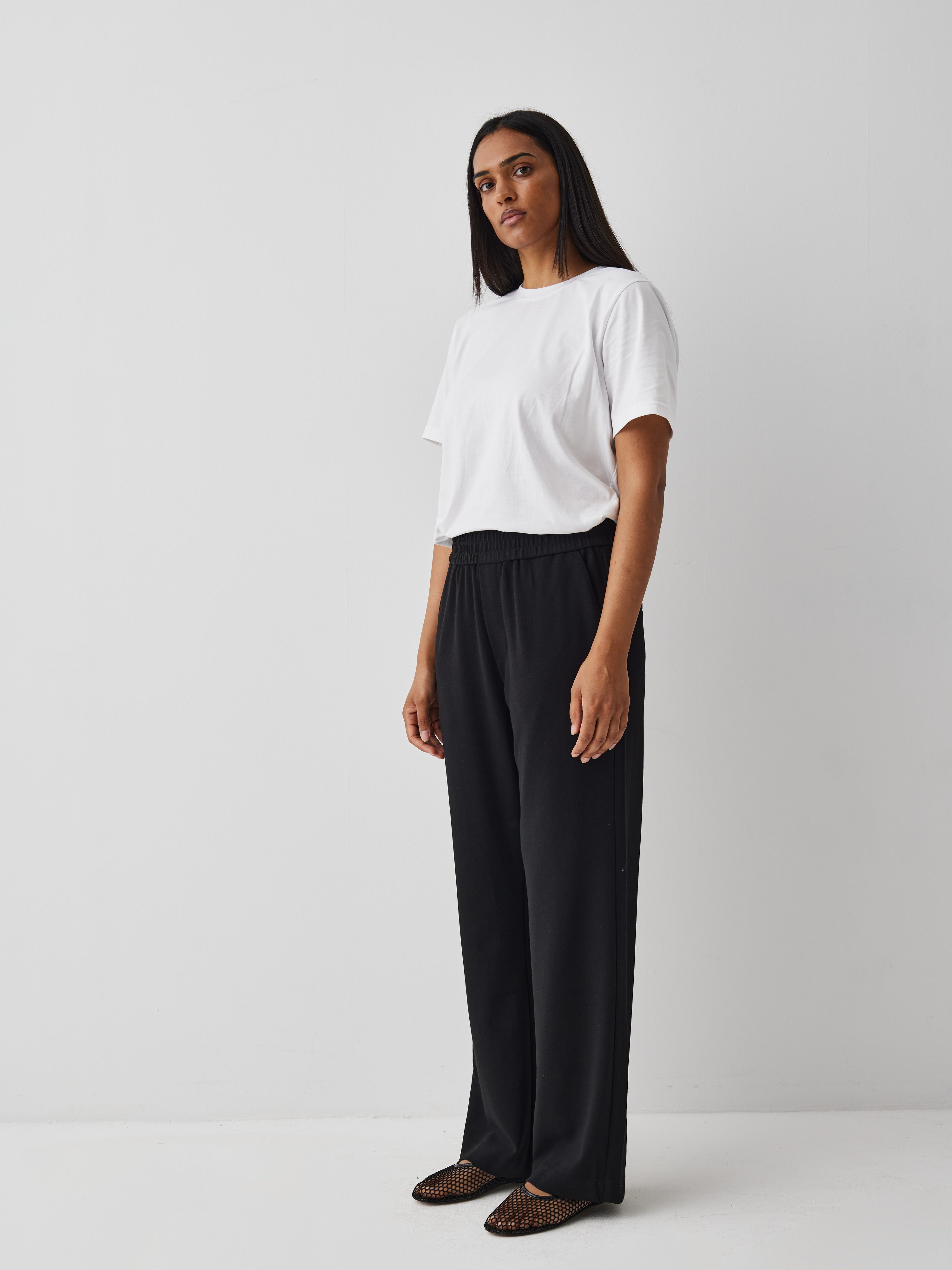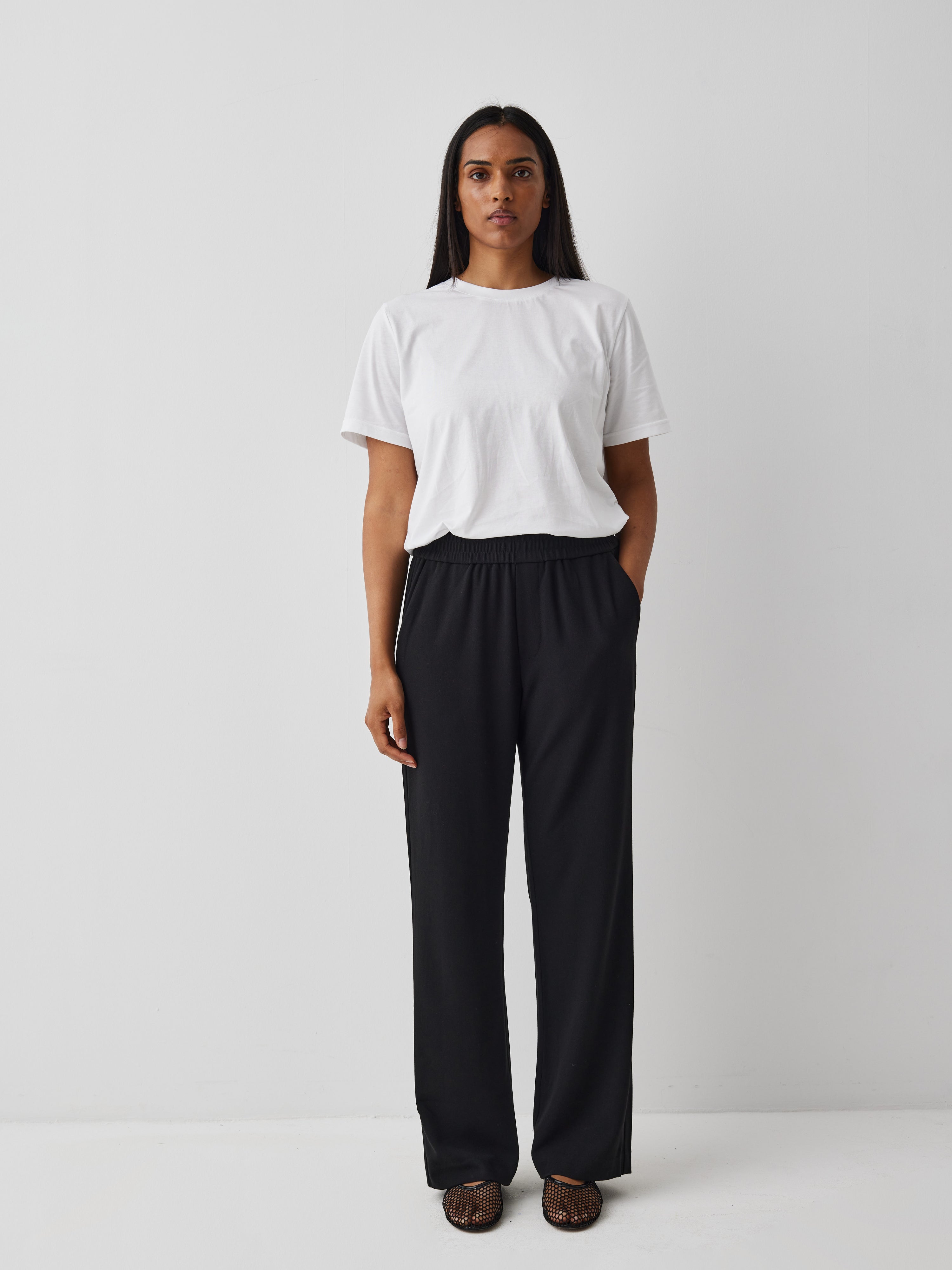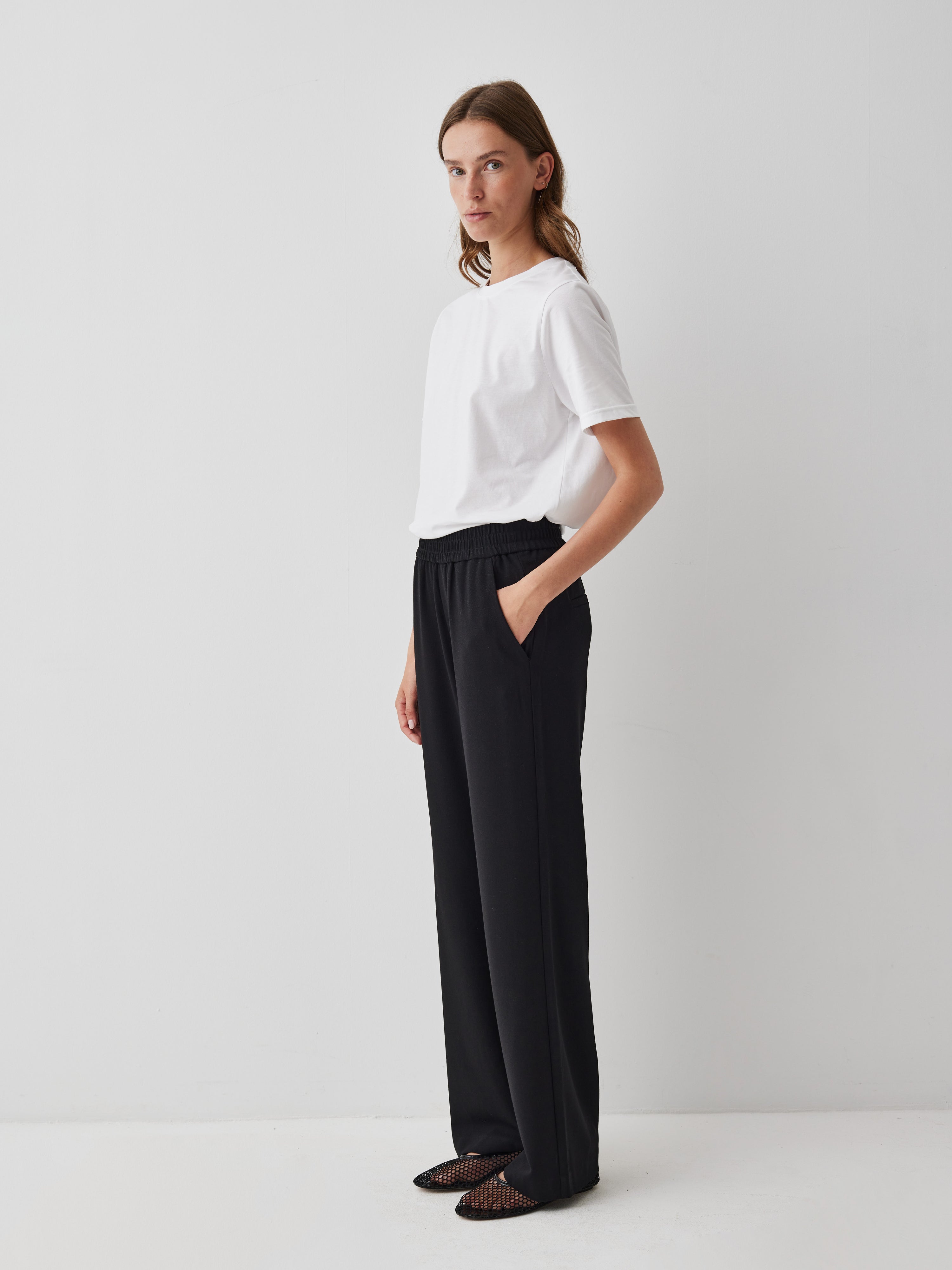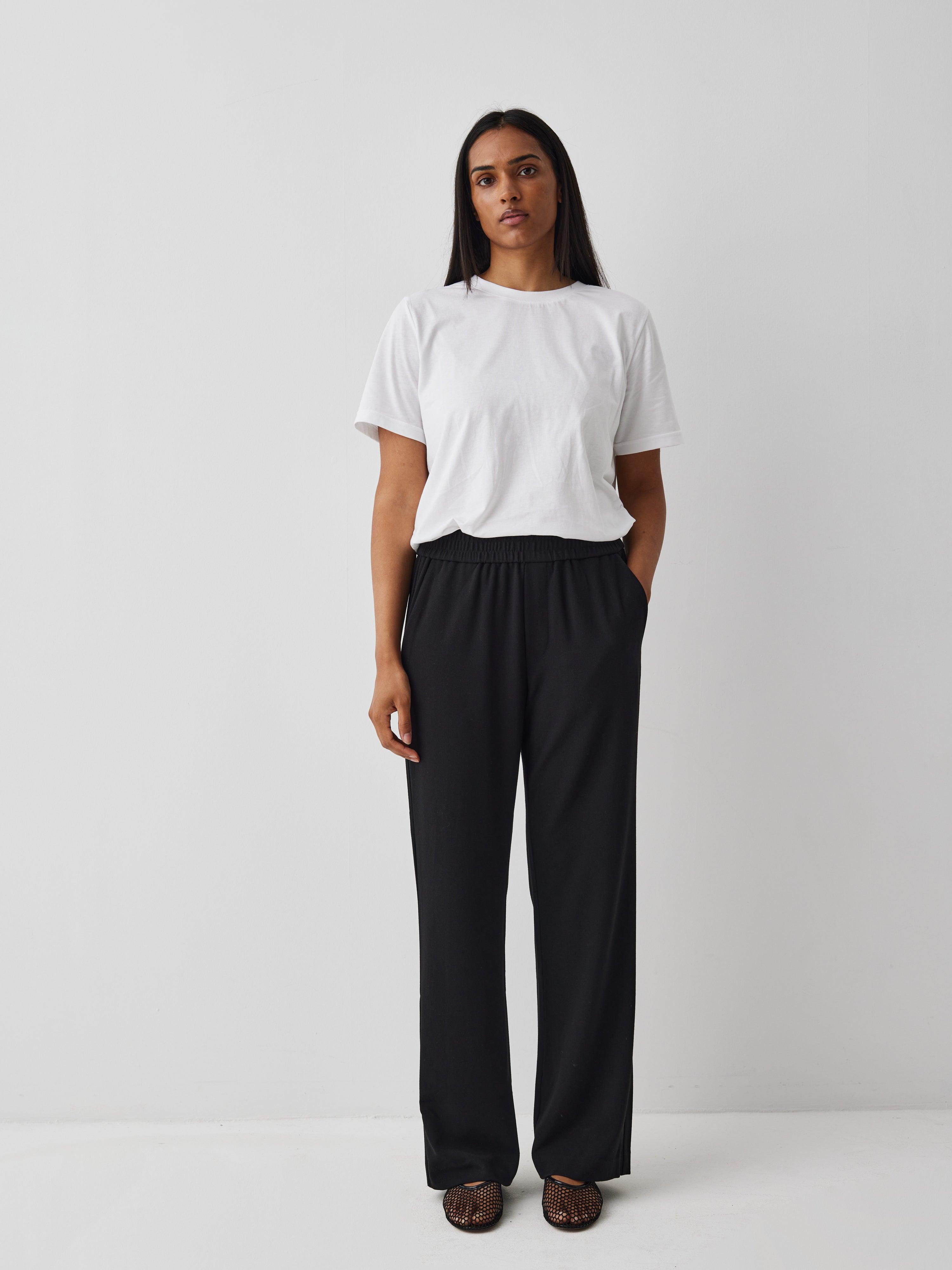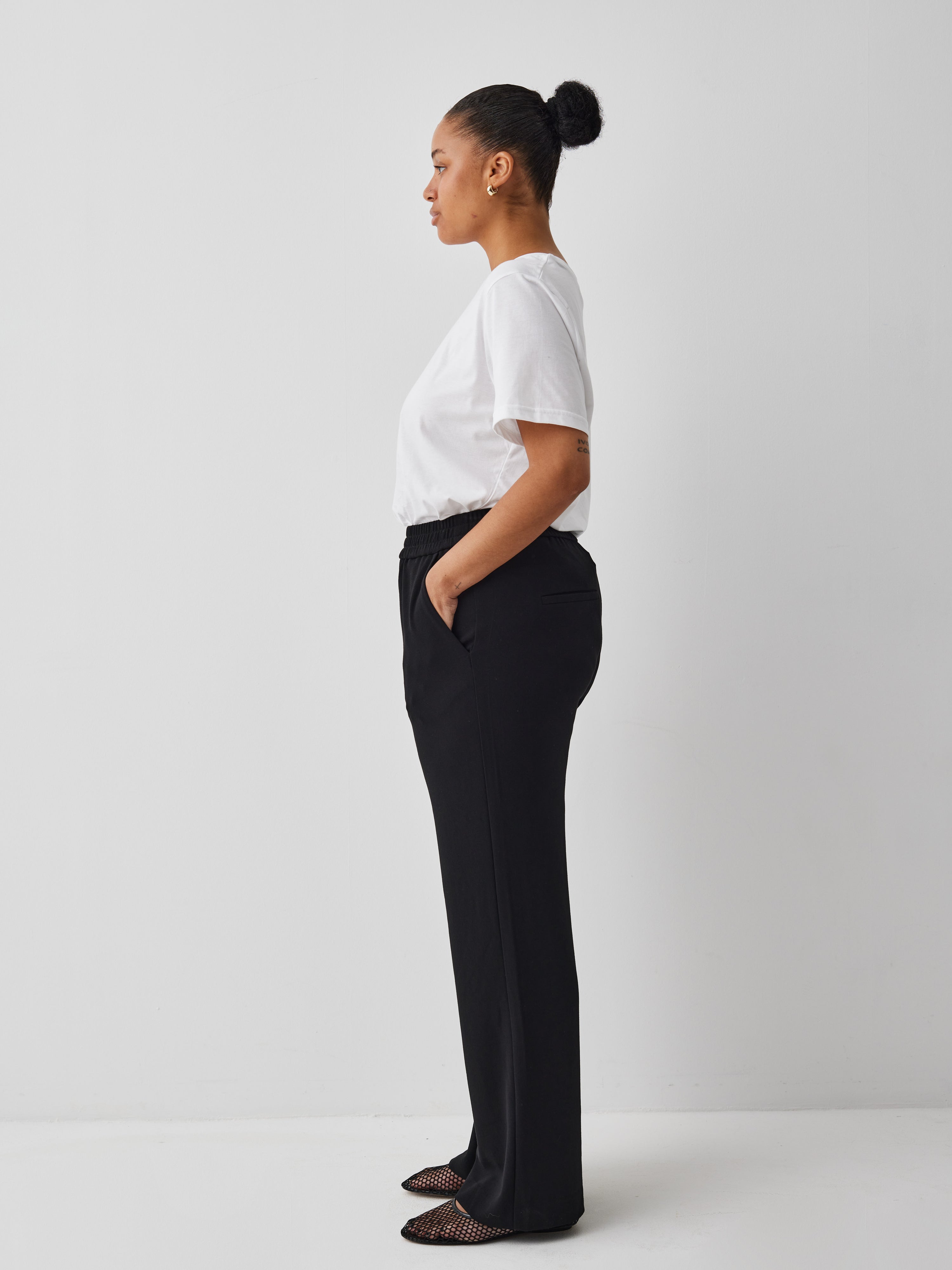 - Stryg ved lav temperatur. Vendes på vrangen ved strygning.