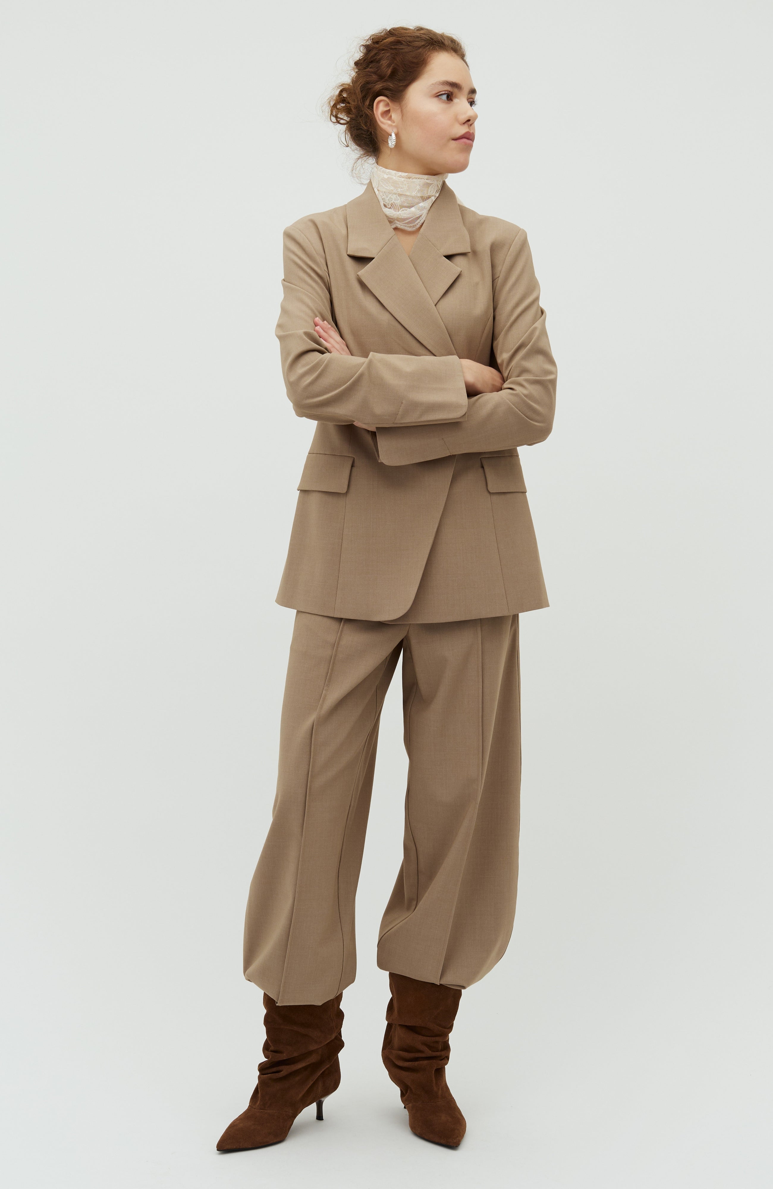 Suit bukser med barrel fit.