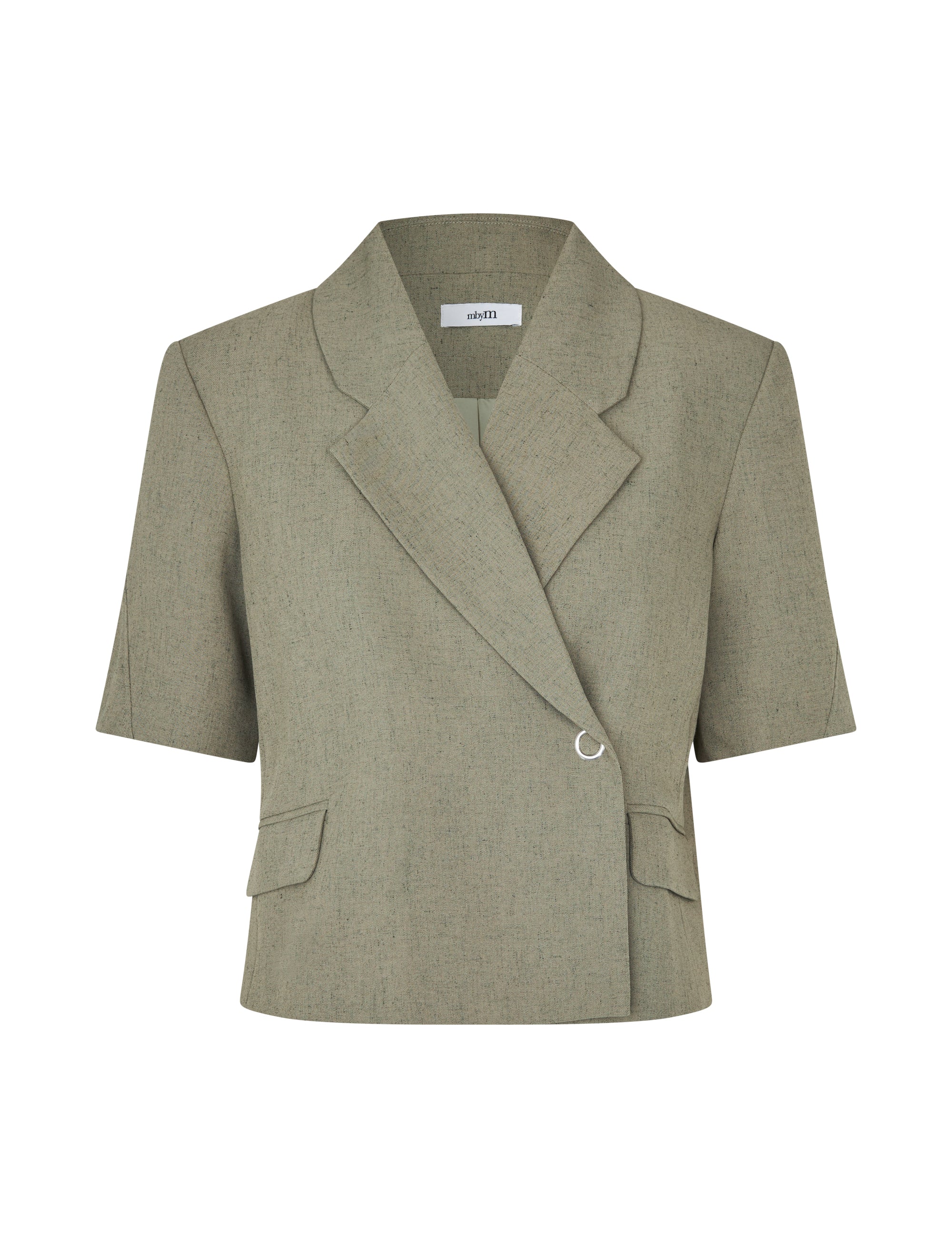 Kortærmet blazer med lukning i siden.